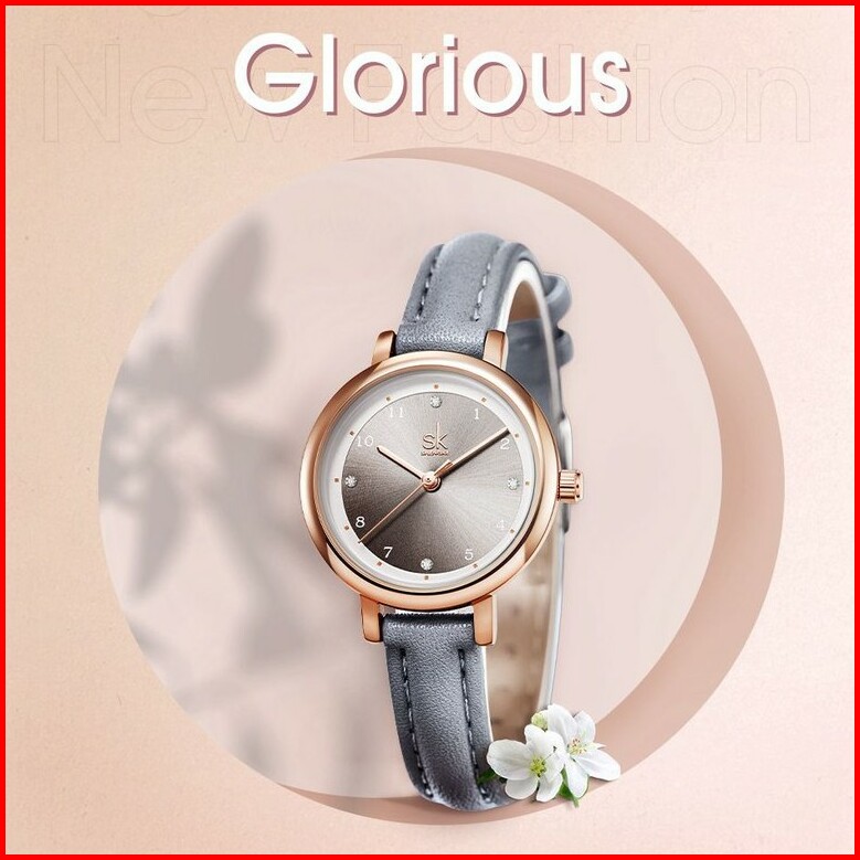 Shengke 9028 Jam Tangan Wanita Analog Tali Kulit Quartz Simple Casual Currenos