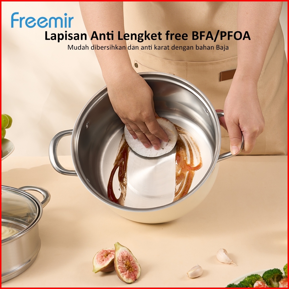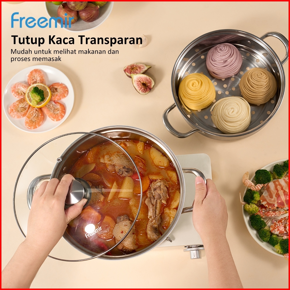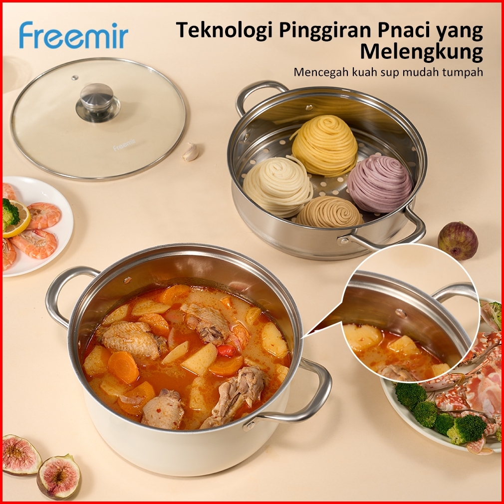 Spesial Freemir Panci Kukus 2 Susun 24 Cm Panci Stainless Steel Panci Anti Karat Serbaguna