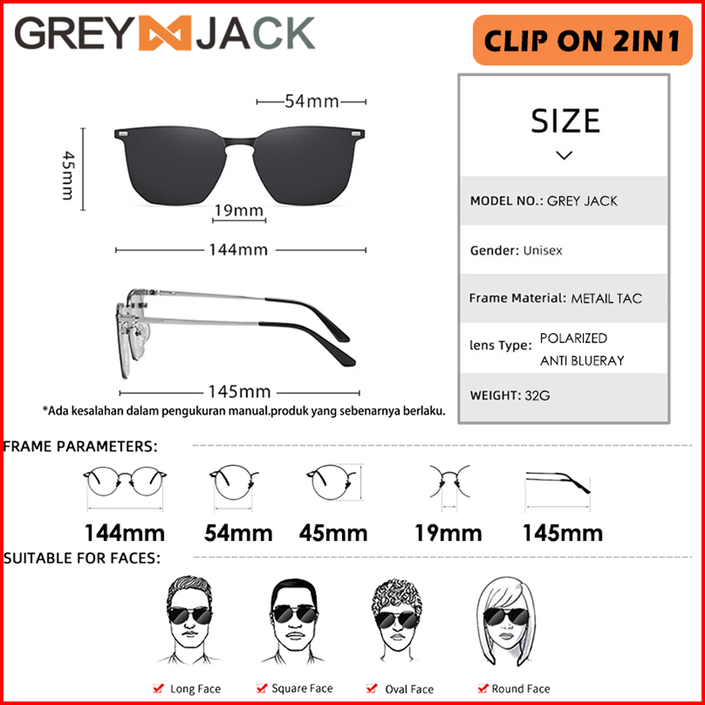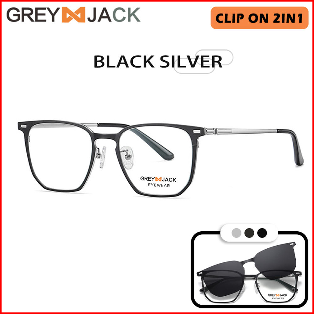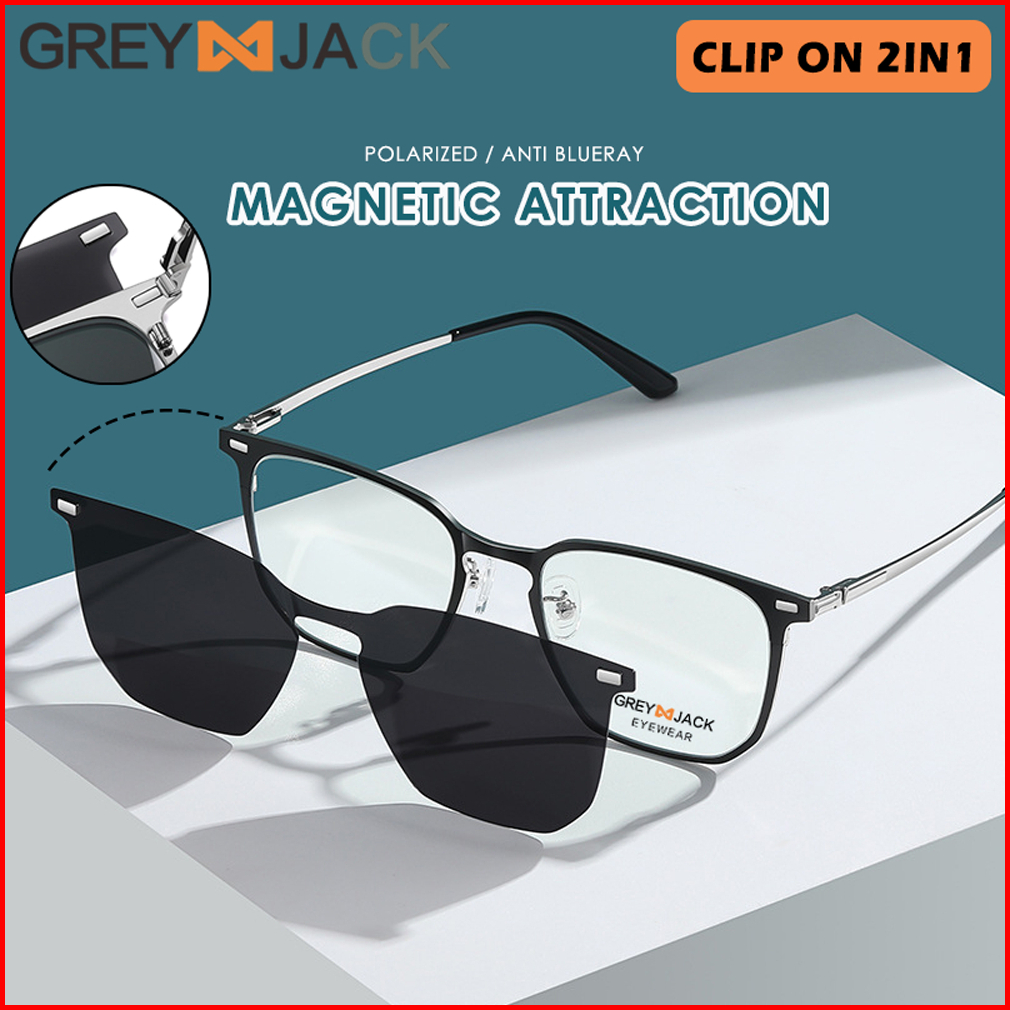 Grey Jack Kacamata Blueray Clip On 2in1 Polarized Bahan Metal Kotak Unik Pria Wanita Bisa Minus Antiradiasi Blueray Phot