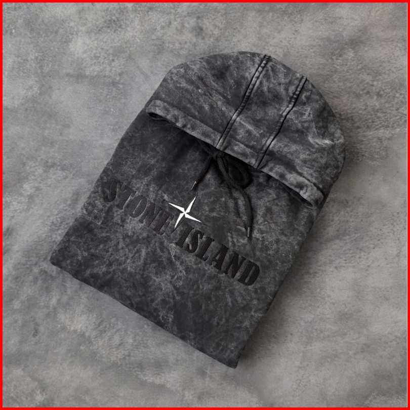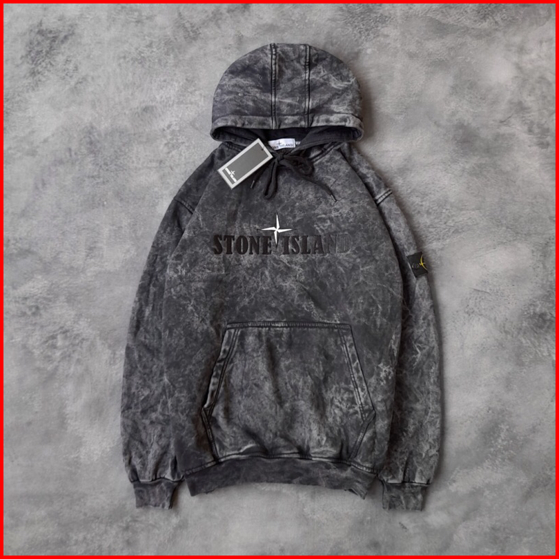 Jaket Sweater Hoodie Stoune Islands Text Bordir Abu Washing Fulltag Aksesoris