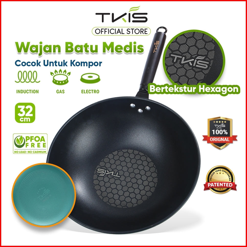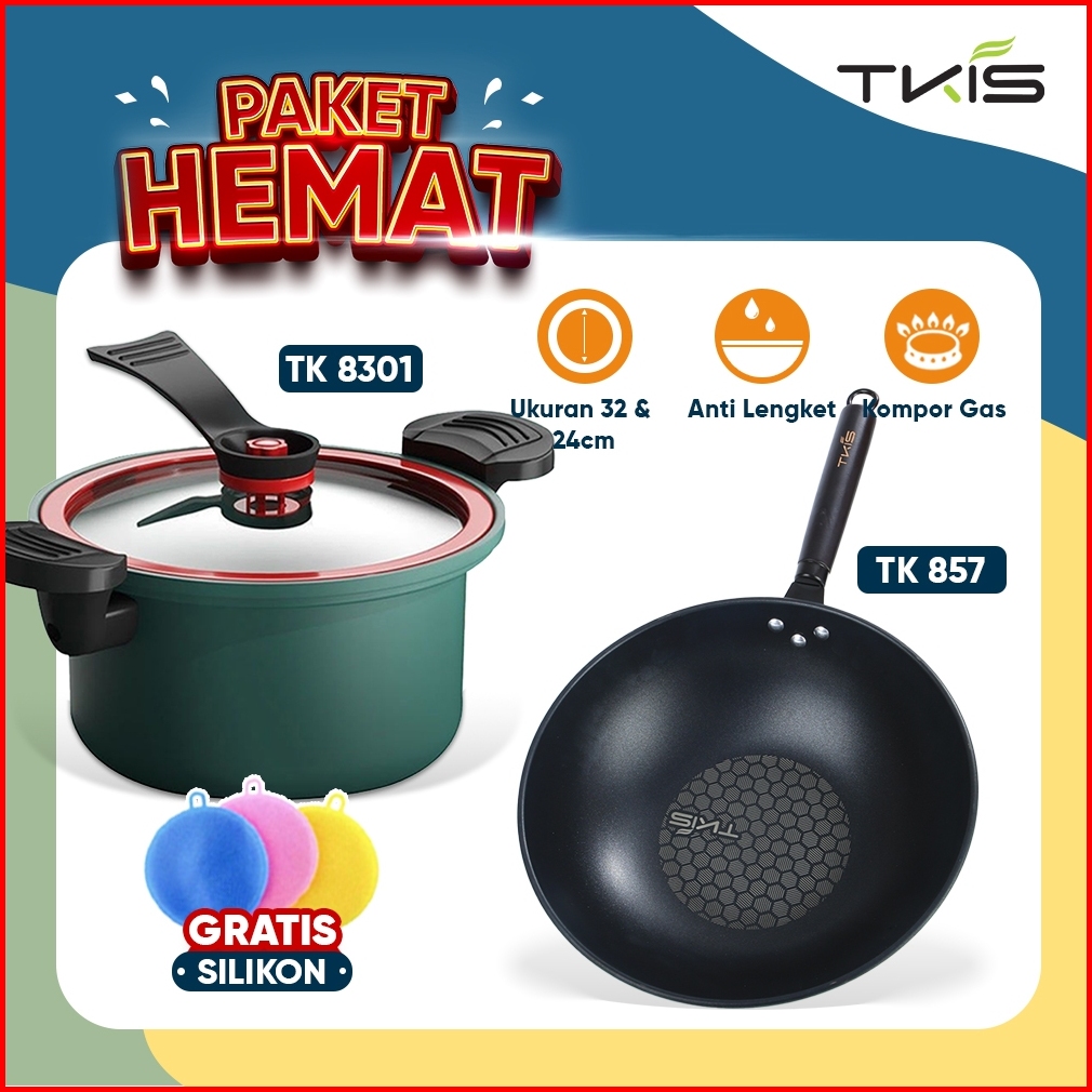 Tkis Panci Presto Batu Medis Pressure Cooker 22cm 3.5l Dengan Wajan Hijau Anti Lengket 32cm Tk-8301 Tk-857