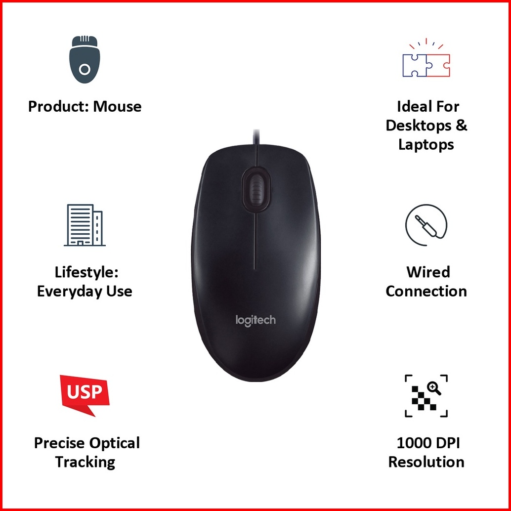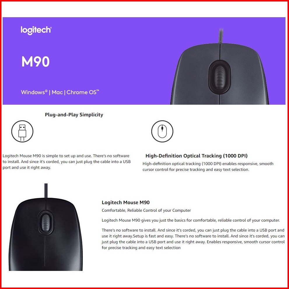 Logitech M90 Wired Mouse Optical Usb Mouse Kabel Logitech - Garansi Resmi 1 Tahun