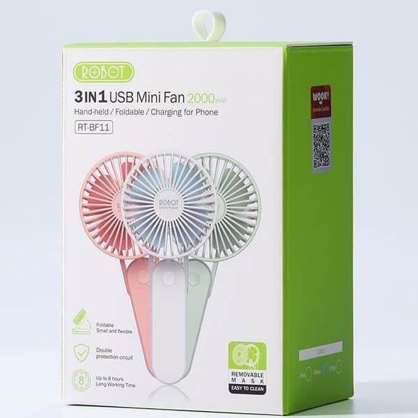 [Star] ROBOT RT-BF11 KIPAS ANGIN PORTABLE MINI FAN & POWERBANK 2000MAH - HITAM