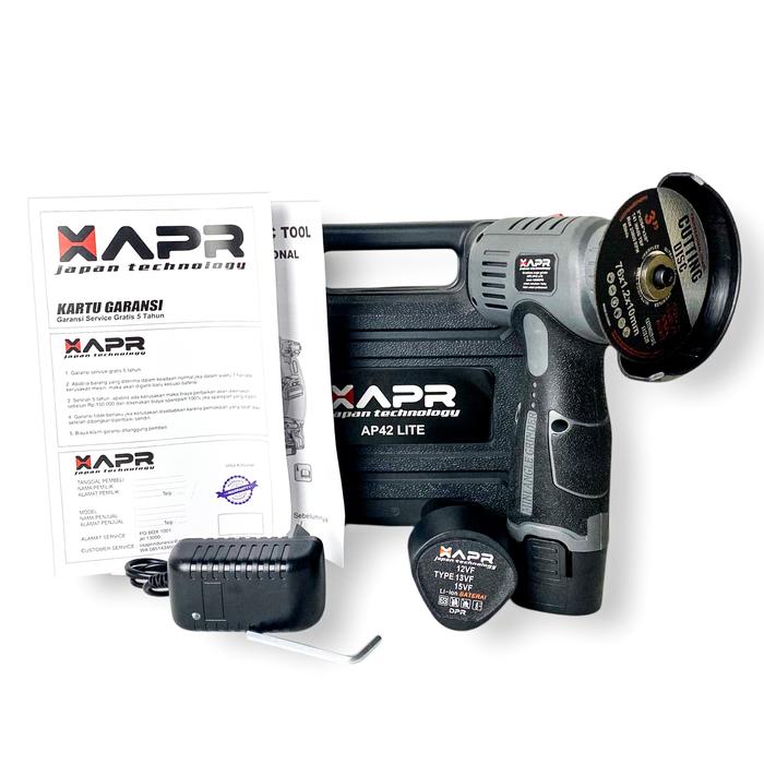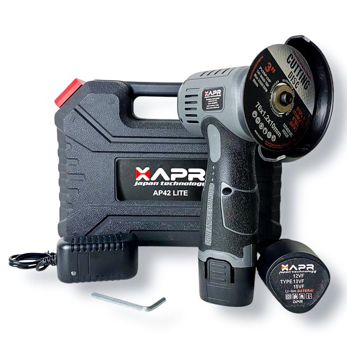 TERLARIS APR MESIN GERINDA TANGAN AP42 LITE CORDLESS ANGLE GRINDER 2BATERAI GURINDA SIRKEL FULLSET