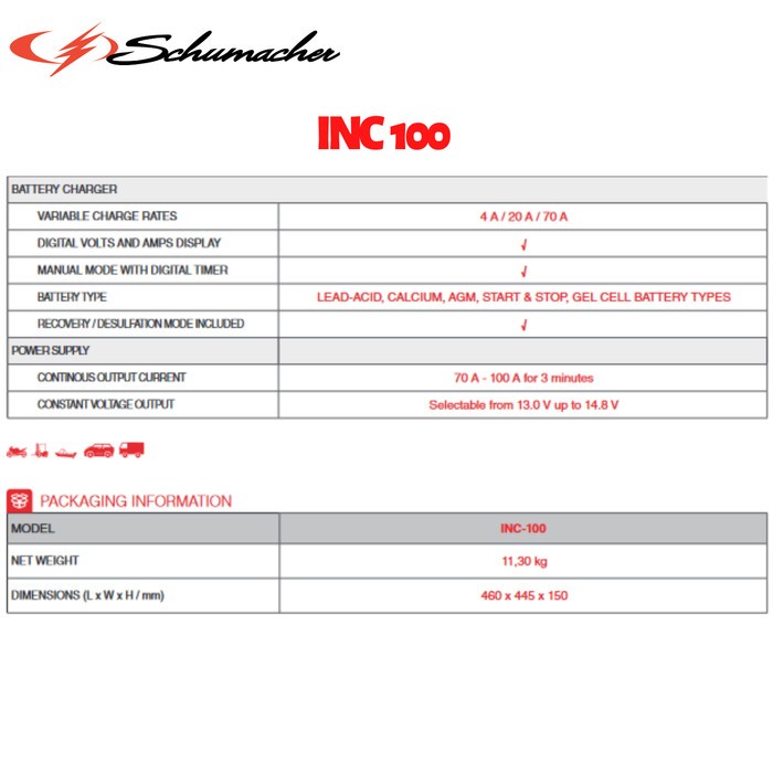 DP 0 (MAD) CHARGER AKI 70A 100A 12V SCHUMACHER INC100 PRO SERIES