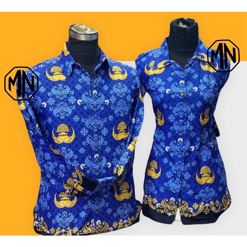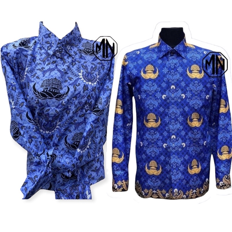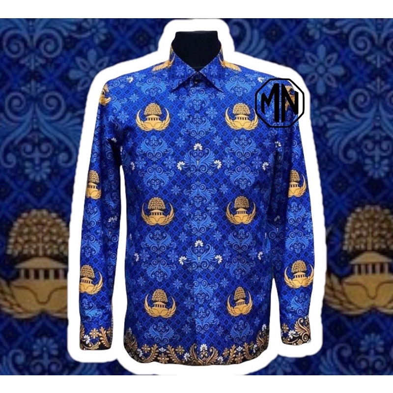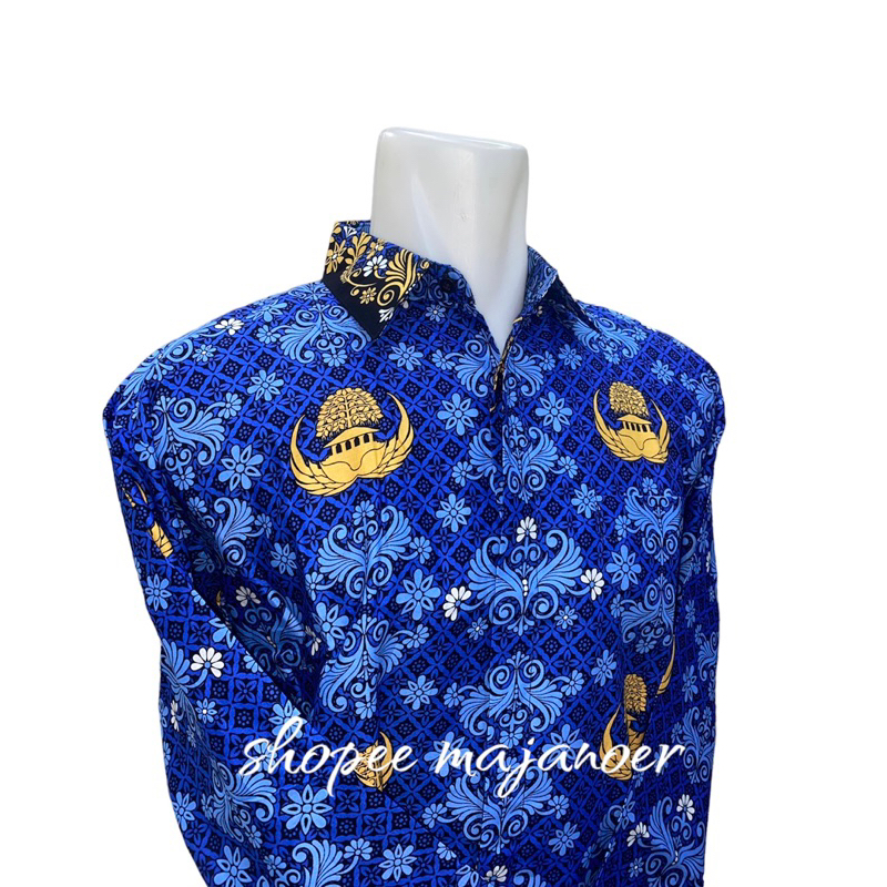 Batik Korpri Pria Motif NEW Kerah Biru & Hitam Furing & Non Furing Size S-5L (Besar/Jumbo) High Quality