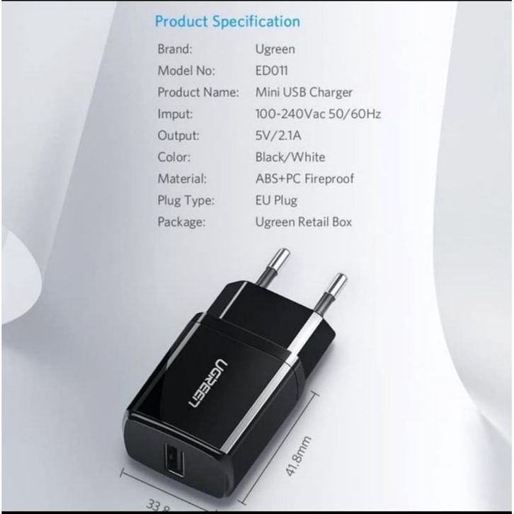 Charger Ugreen 2.1A 10.5 Watt for IPhone & Android with Smart Protection Original