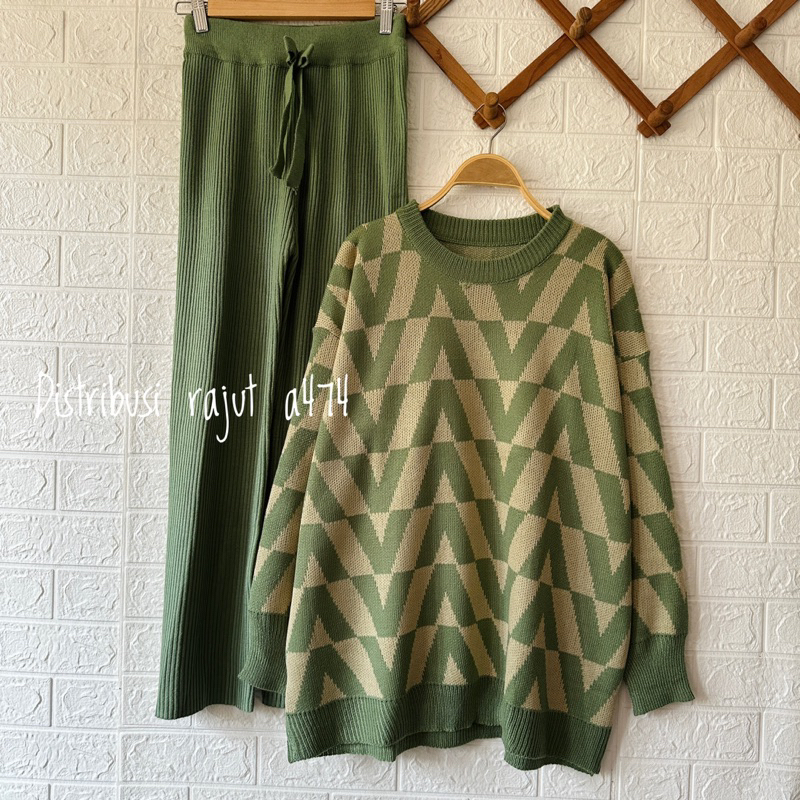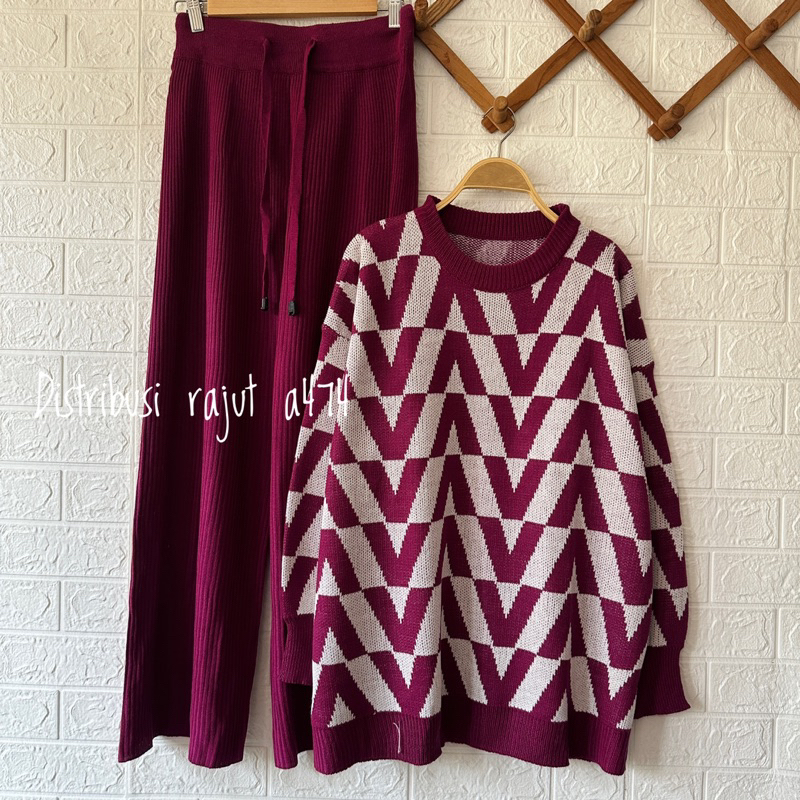 OneSet Nuno Knit Sweater Oversize Setelan Celana Kulot Rajut Wanita