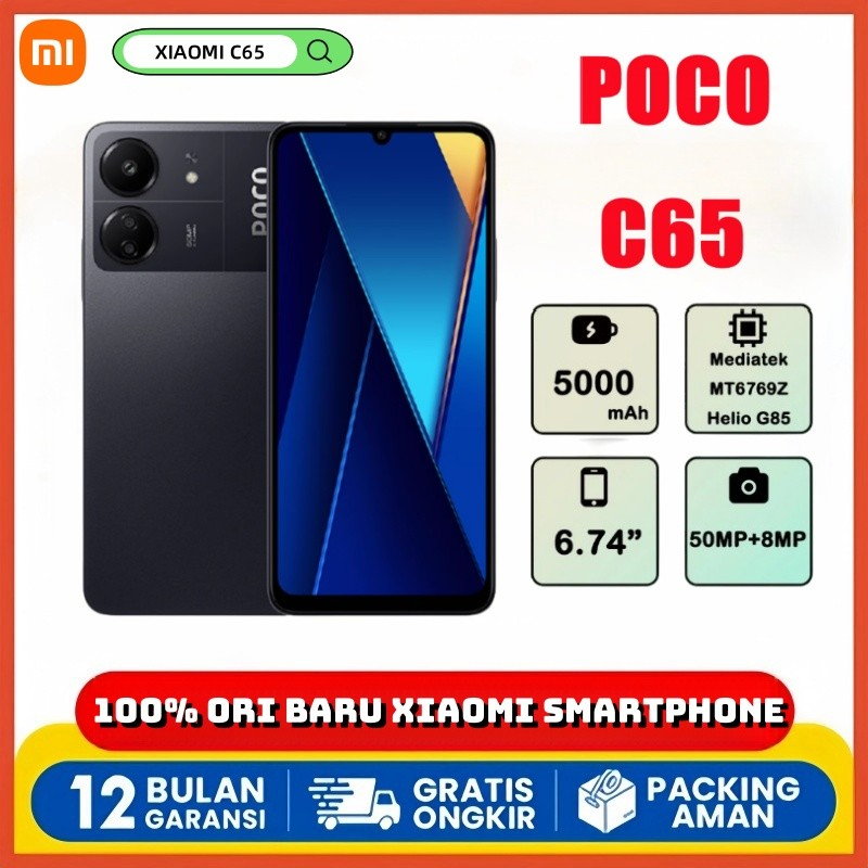 Murah Handphone Xiaomi POCO C65 Ram 8/256GB 4G LTE 6.74 inci 50MP+12MP Smartphone Dual SIM Handphone Indonesia