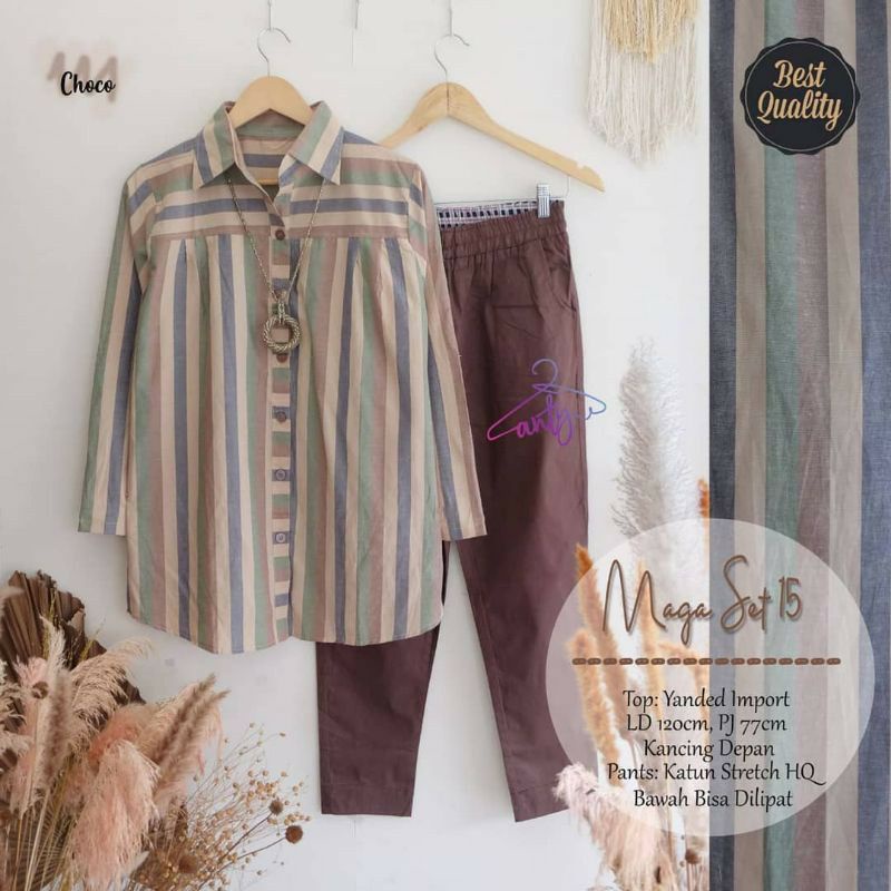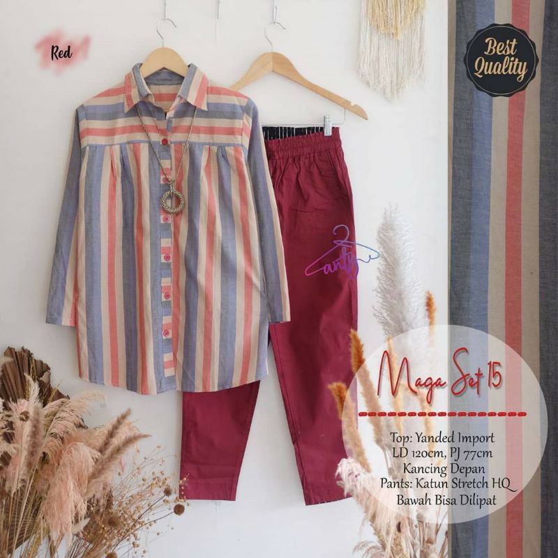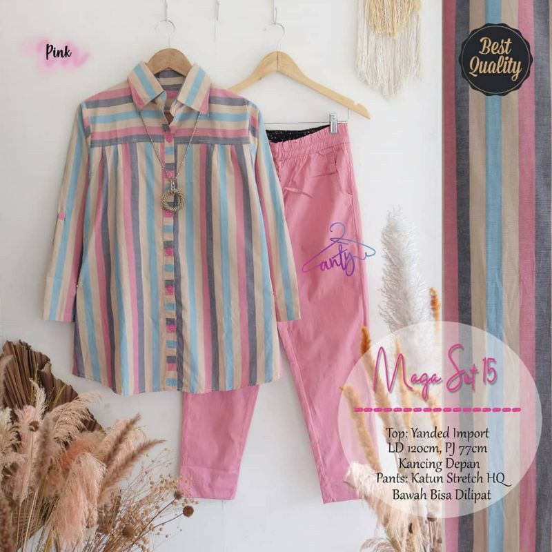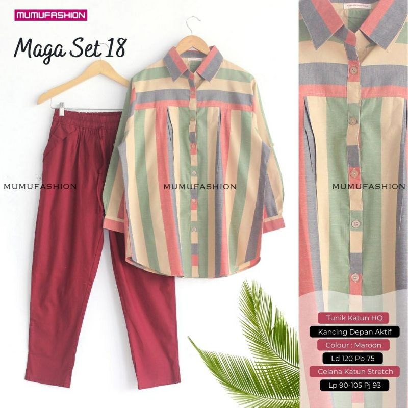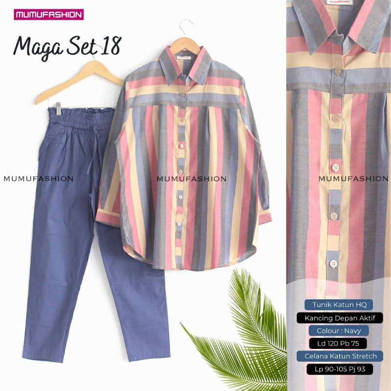 MUFASH - Setelan One Set Katun Salur Jumbo Maga Set # 18 by Mumu Fashion