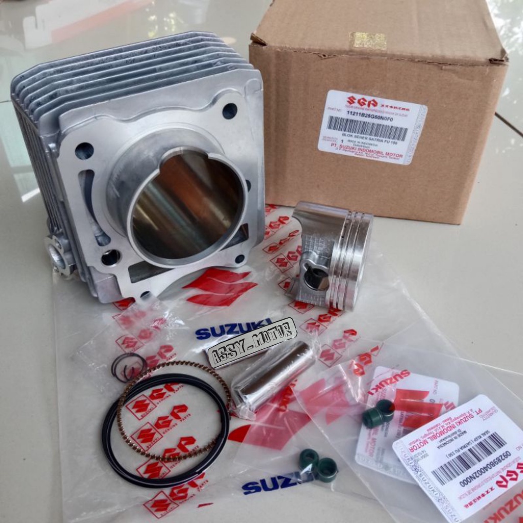 Blok Seher Set Satria Fu 150 Lama, Cylinder Assy Suzuki Sartia Fu 150 Karburator, Plus Piston Set Bonus Seal