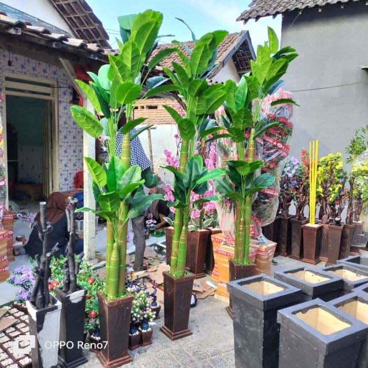 POHON PISANG DENGAN POT JUMBO TINGGI 2 METER //. BUNGA HIAS PISANG ARTIFICIAL PLASTIK KAIN IMPORT TIRUAN DEKORASI