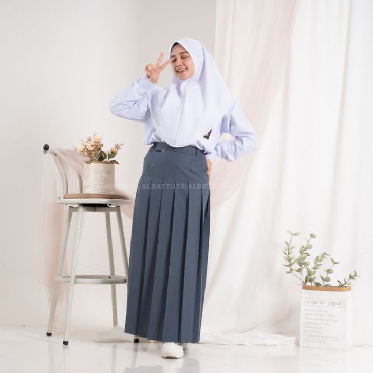 Seragam sekolah SMA Seragam SMA Rok Panjang Rempel Bawah Pinggang Abu - Seragam Sekolah - Rok Rempel - Rok SMA Best