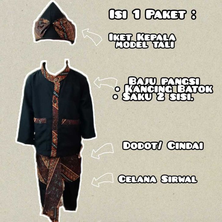 Baju pangsi anak laki laki Real Pict setelan pangsi rebo nyunda baju adat tradisional + iket kepala dan dodot cindai