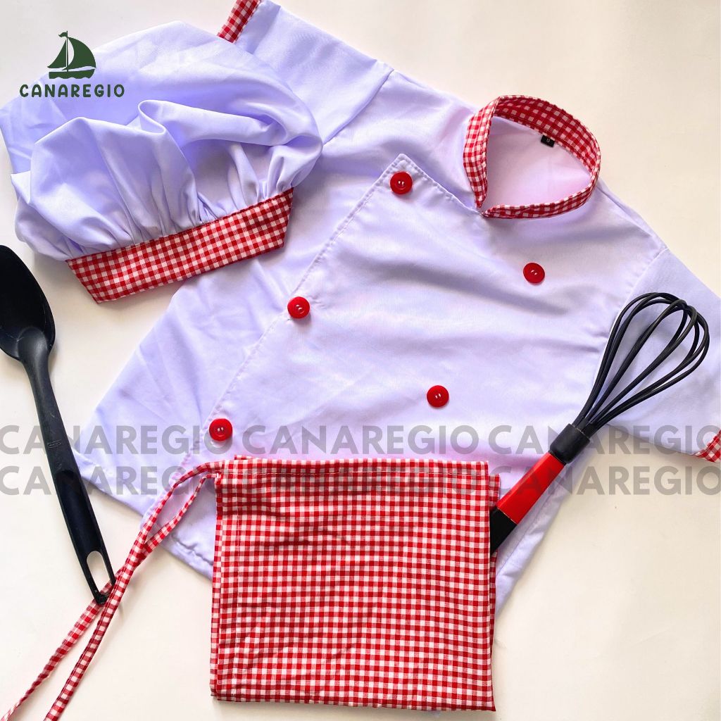 (FLASH SALE) Baju Koki Set Celemek dan Topi Koki Anak Apron Chef Katun Set by Canaregio
