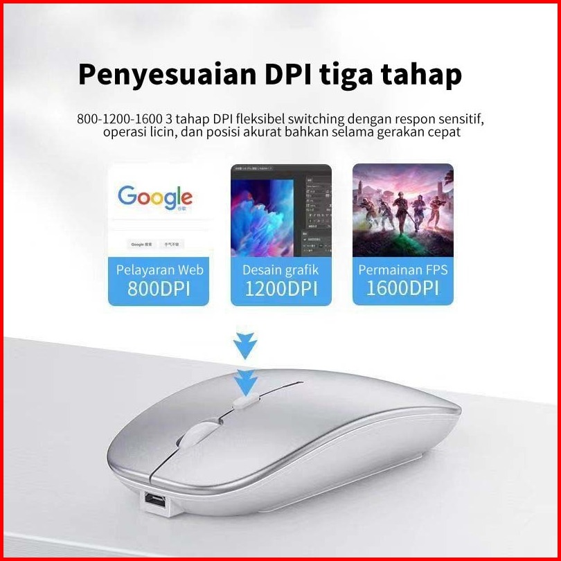 Pasevin Bluetooth Mouse Baterai Wireless Tipis Portable Rechargeable Usb Mouse