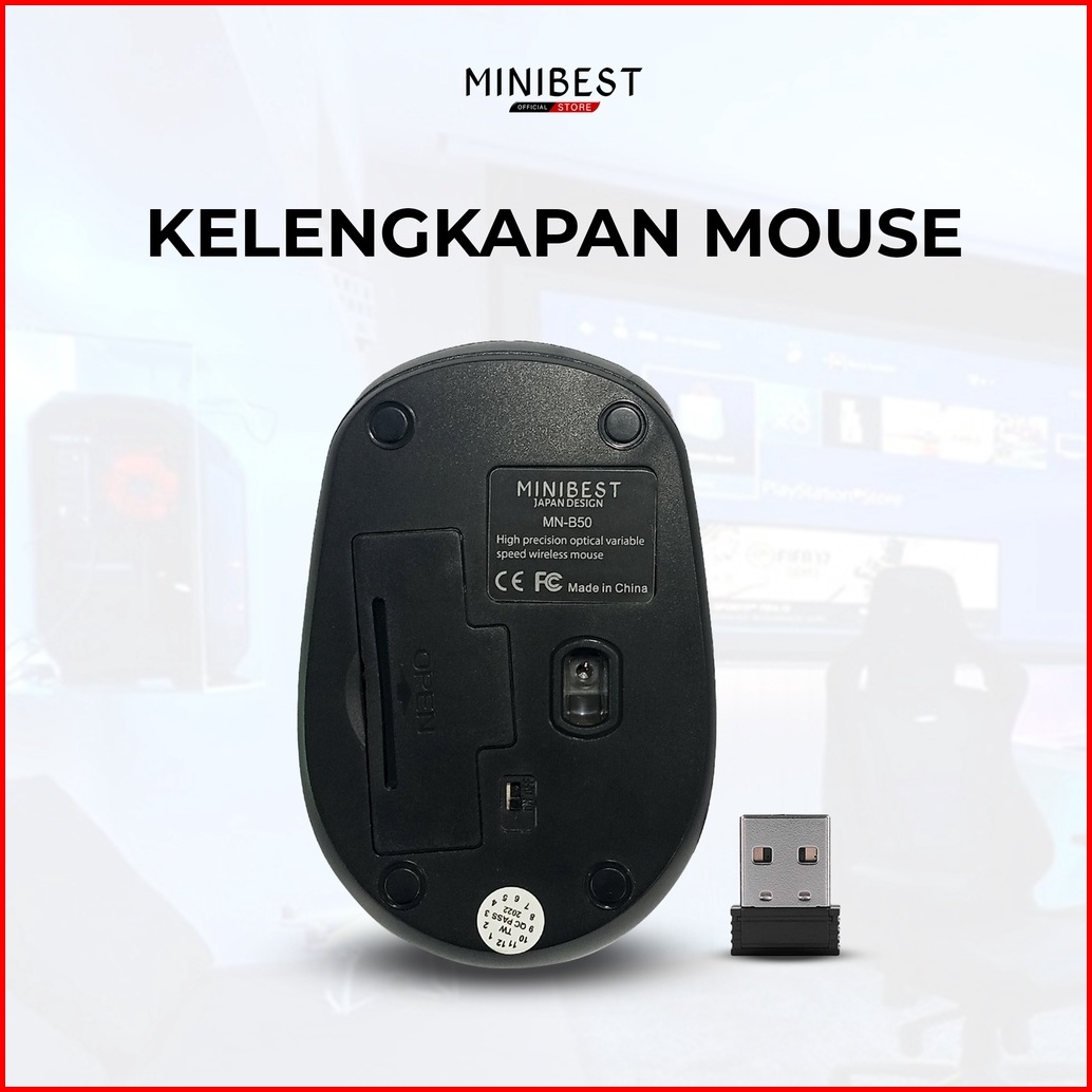 Minibest Mn B50 Mouse Wireless 2.4ghz Optical 1600dpi Dengan Receiver Usb Untuk Pc Laptop