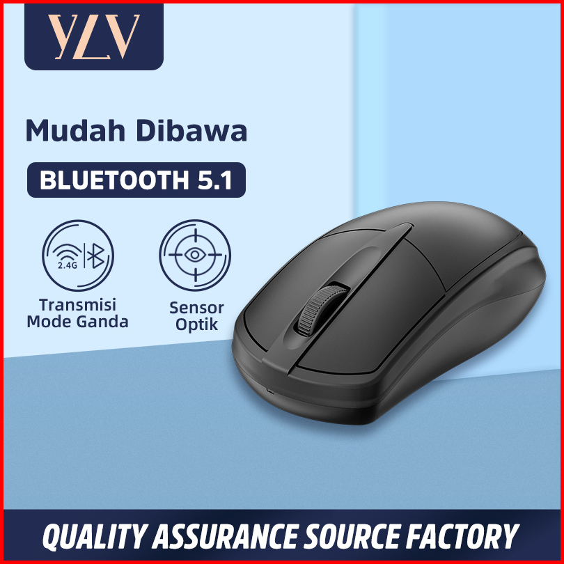 Ylv Wireless Mouse Gaming 1200dpi Usb Computer 2.4ghz Bluetooth 5.1 Transmisi Mode Ganda Desain Ergonomis Tidur Cerdas T