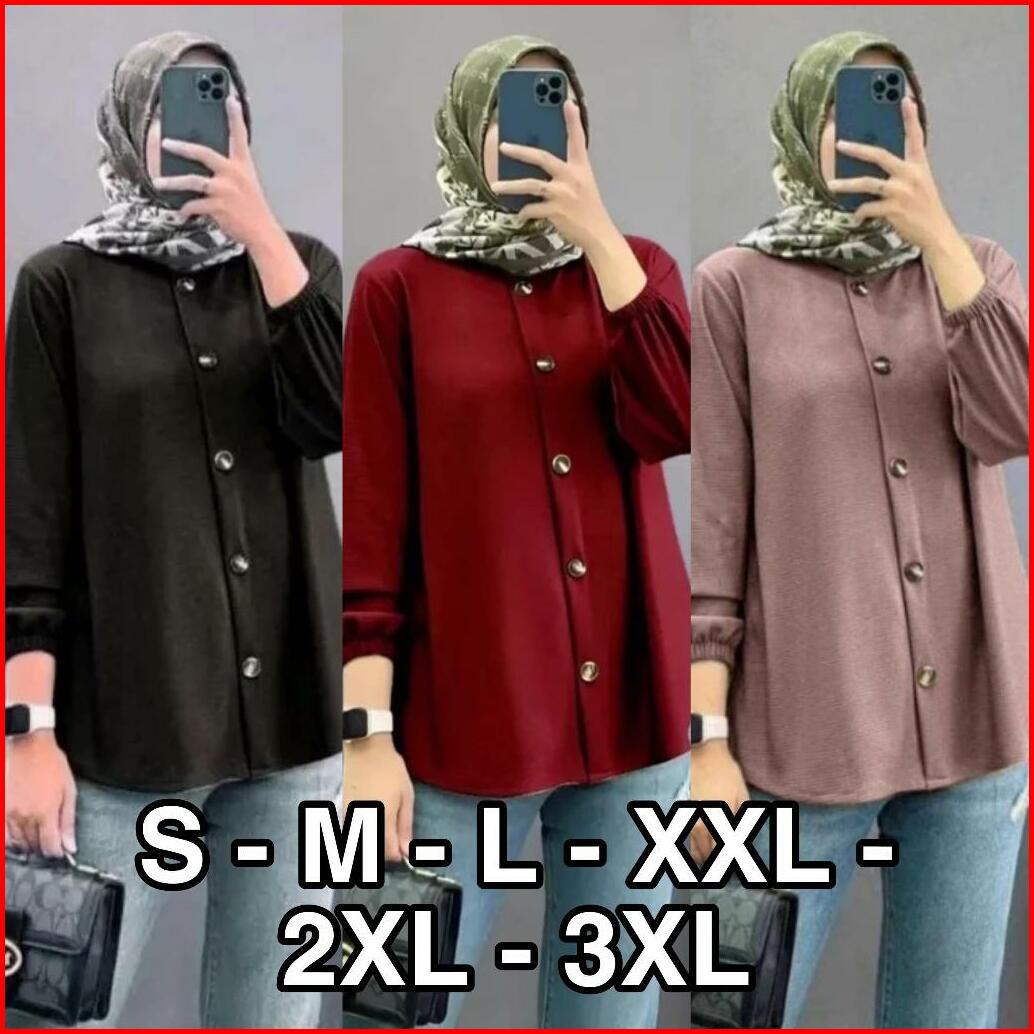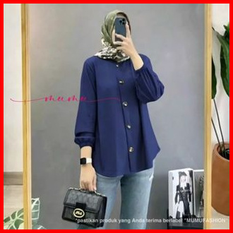 Mumu - Devanca Shirt Atasan Kemeja Wanita Crinkle Cringkel Jumbo Big Size Kombinasi Mumufashion
