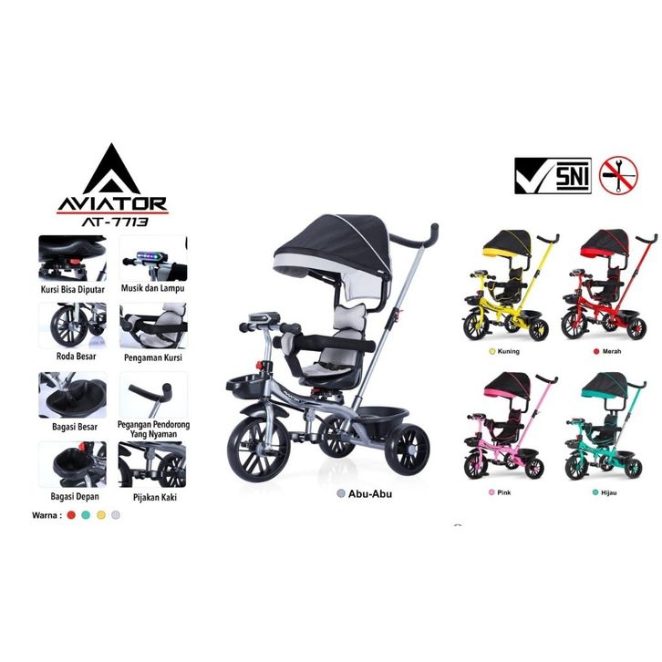 (TERMURAH) SEPEDA ANAK RODA TIGA AVIATOR AT-7713 / SEPEDA ANAK MURAH / SEPEDA BAYI USIA 1-5 TAHUN ADA MUSIC &