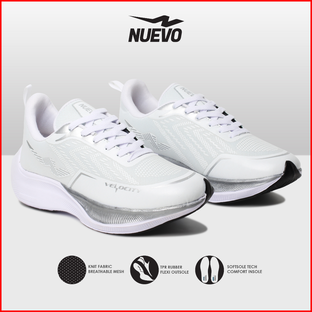 Nuevo - Velocity Full White Sepatu Sport Running Sneakers Sekolah Casual Lari Pria