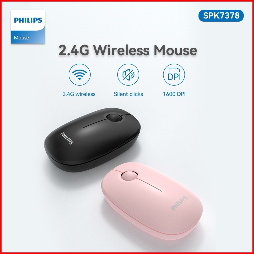 Philips Mouse Wireless Spk7378 Silent Click Optical 1600 Dpi Original - Garansi Resmi