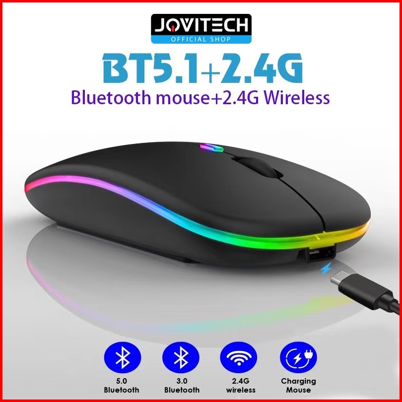 Jovitech Mouse Bluetooth 5.1 Wireless Silent Rechargeable 2.4ghz 1600dpi Receiver Usb Untuk Pc Laptop Hp - S9