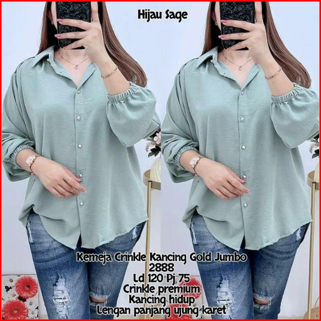 Kemeja Crinkle Polos Wanita Jumbo Kancing Premium