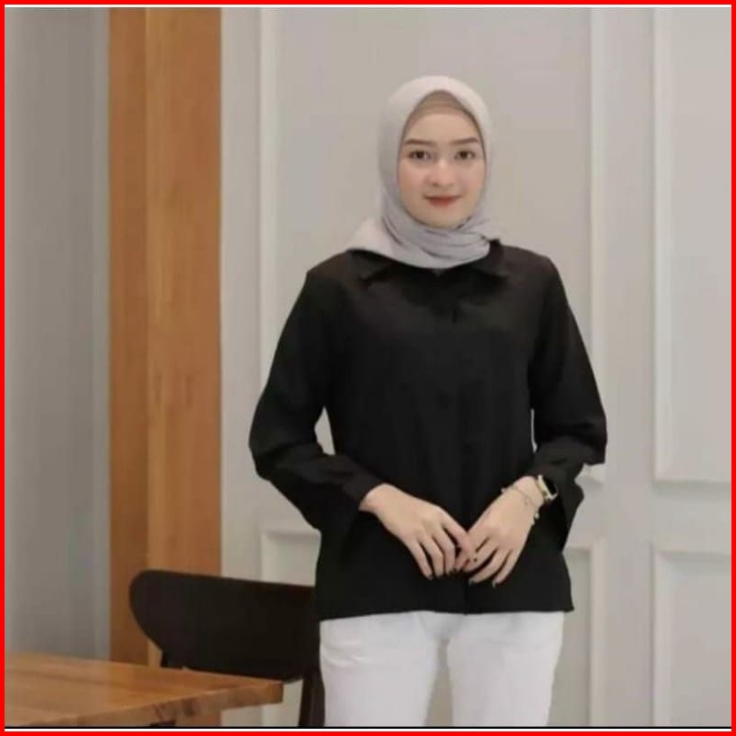 Kemeja Wanita Polos Lengan Panjang Putih Hitam Premium