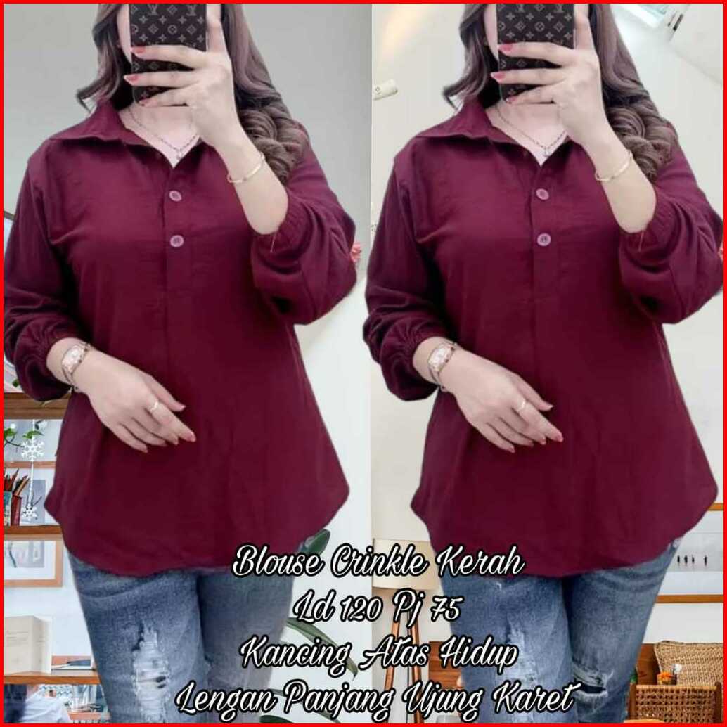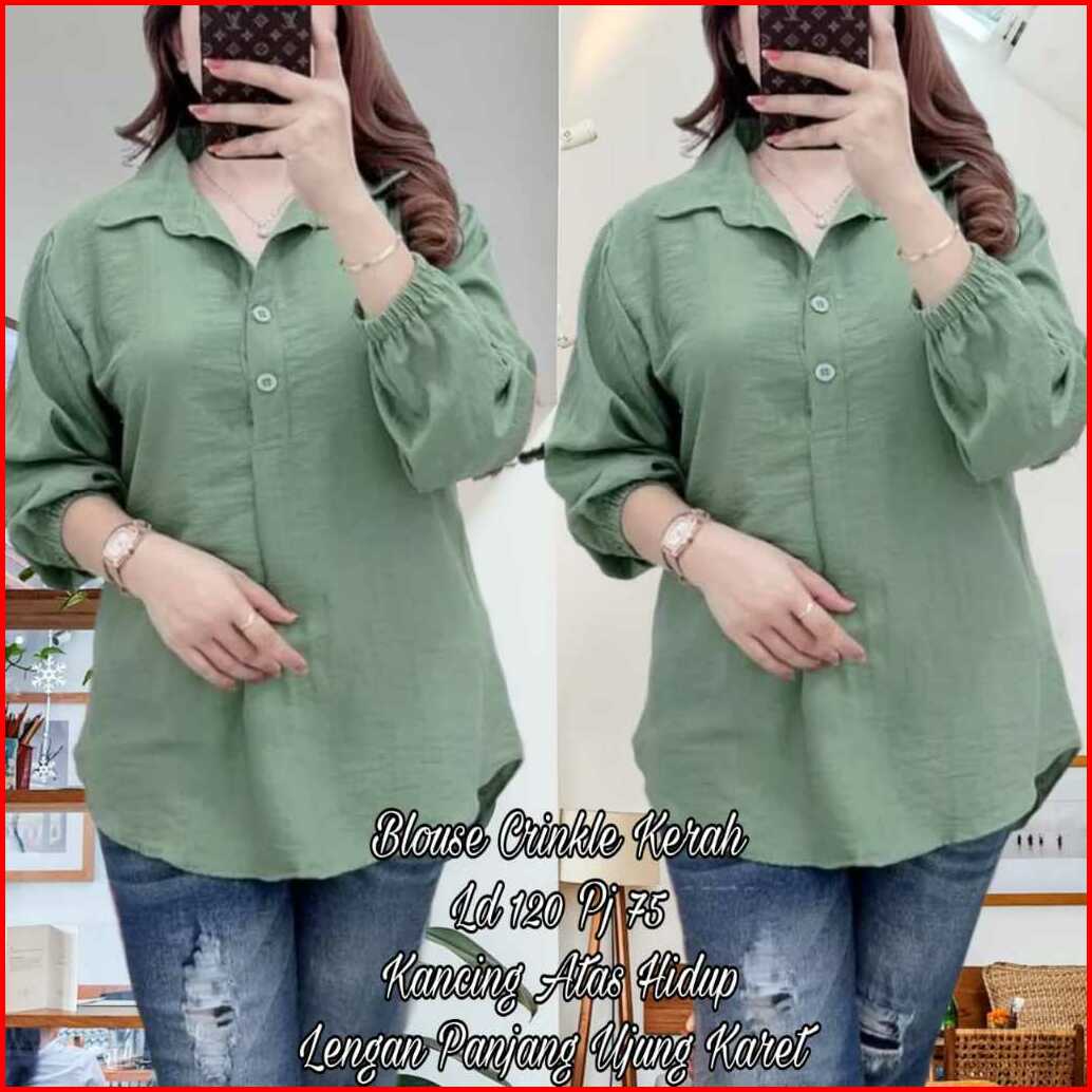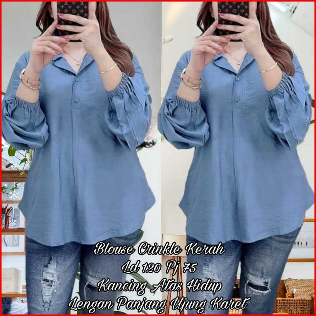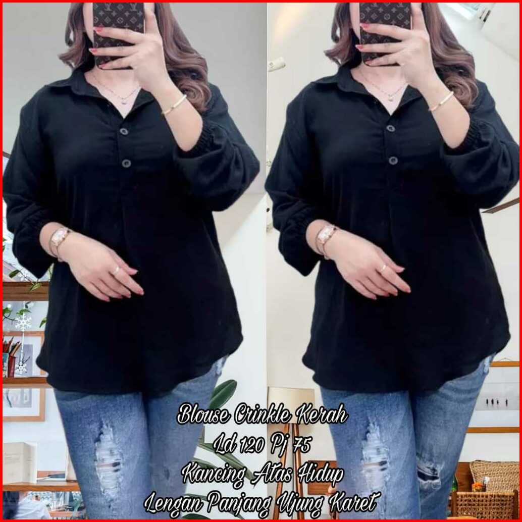 Kemeja Wanita Crinkle Atasan Wanita Polos Lengan Panjang Terbaru Kekinian Terlaris Populer Lengan Karet