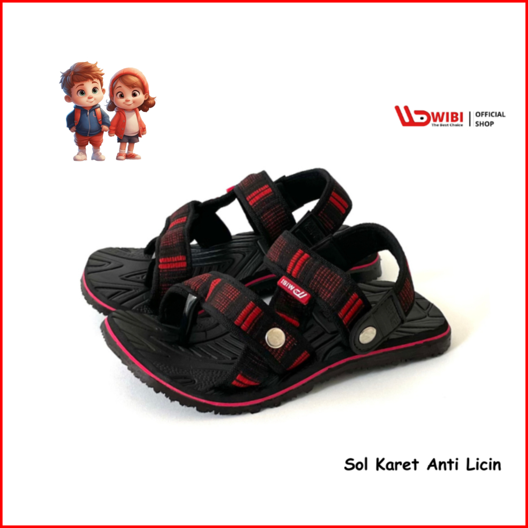 Wibi Adventure Kids Low Ak01-04 Sandal Gunung Anak Pria Wanita Slip On Ada Jepit Size 28 Sd 37 Merah