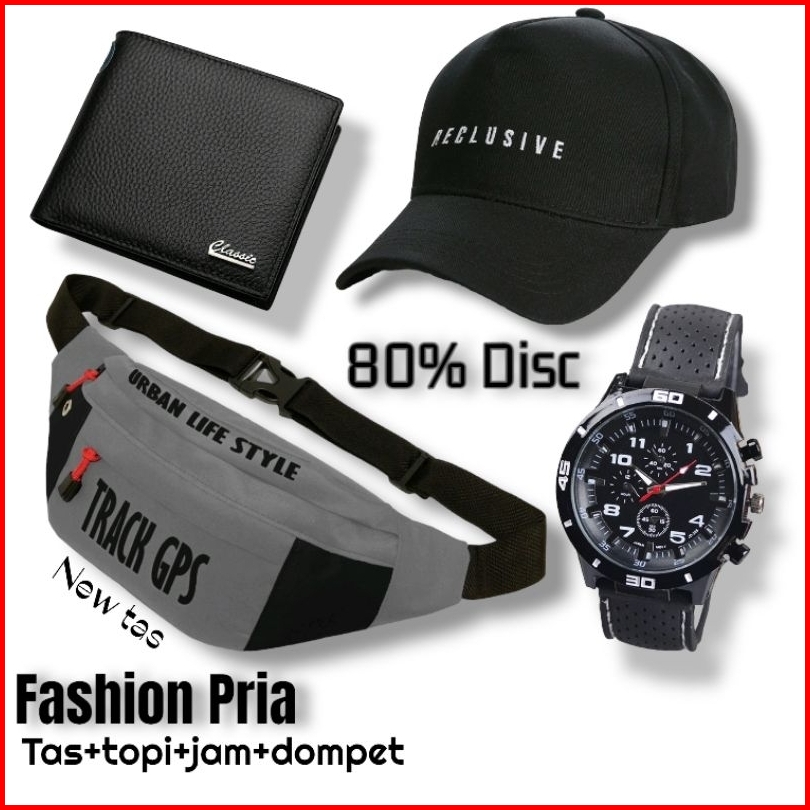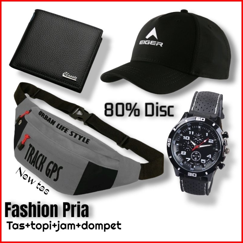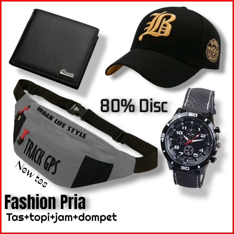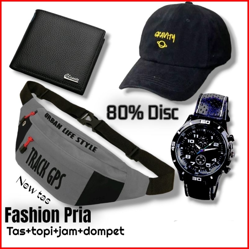 Promo Style Pria Sepaket - Tas Salempang Track Gps Gratis Jam Analog Stainless Gratis Dompet Pria Gratis Topi Baseball