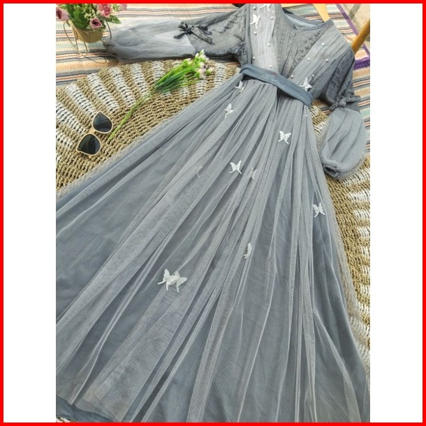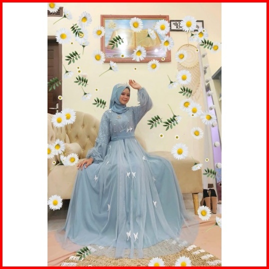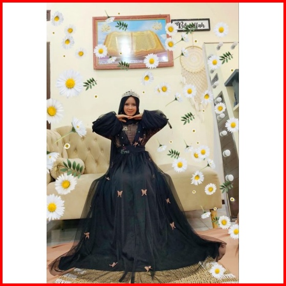 Erlindaw Collection Gamis Tania Size M L Xl Xxl Bahan Tile Burkat Dan Ceruty Kupu Kupu Gamis Muslim