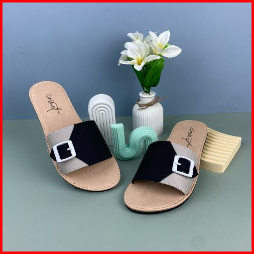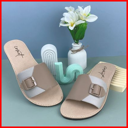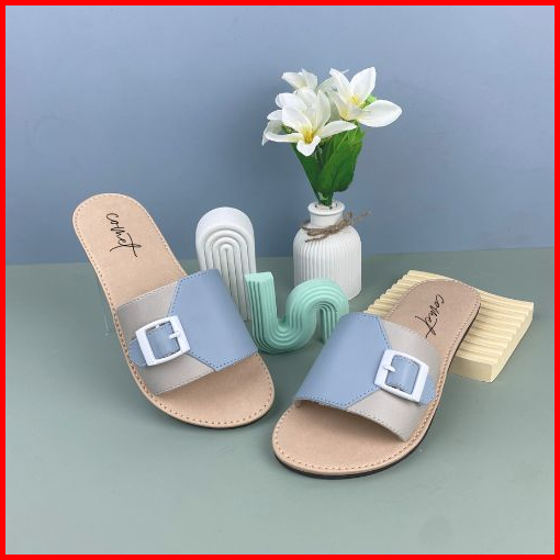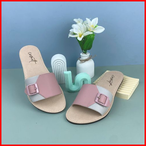 Comet Sandal Wanita Lunox Selop Sandal Kekinian Terbaru Flat Kret Nonslip Moti Gesper Tasikmalaya