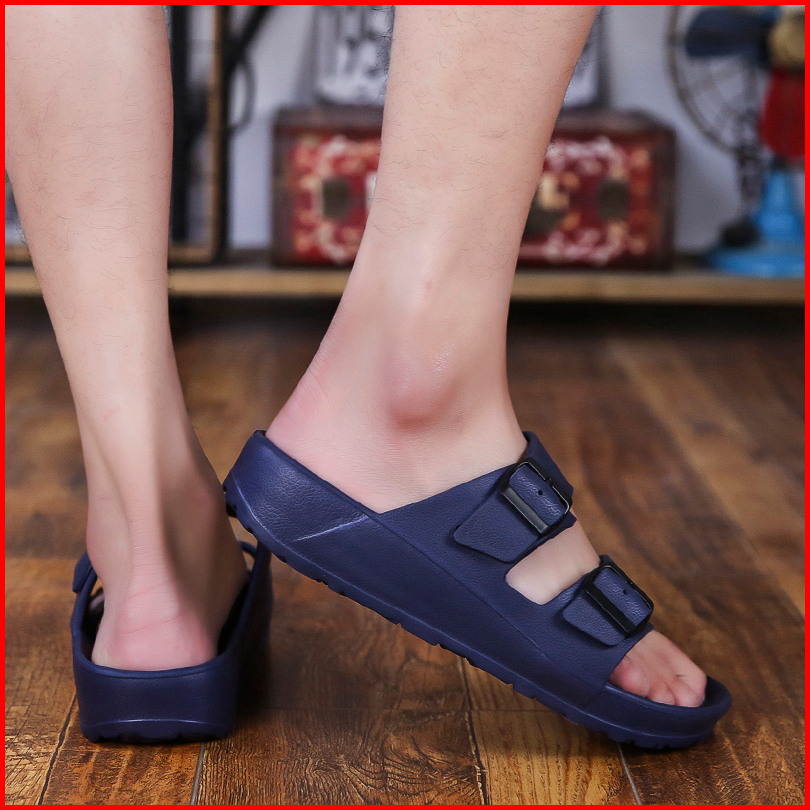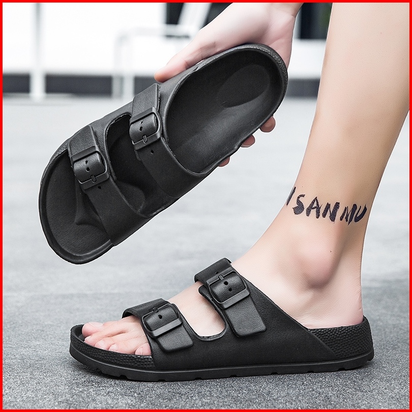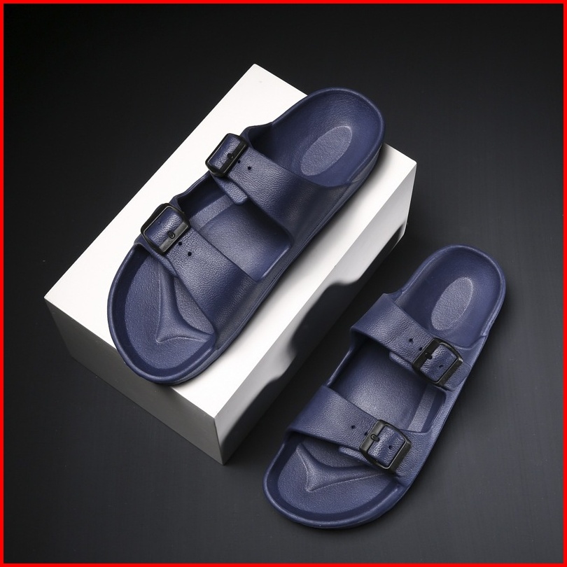 Sandal Selop Pria Sandal Laki Laki Anti Selip Tahan Aus Sol Lembut Nyaman Berkancing Dua Baris Rumah Mode Slip On Sendal