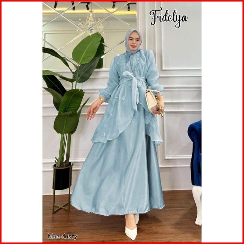 Gamis Pesta Organza - Gamis Fidelya Payet Lamaran Nikahan Tunangan