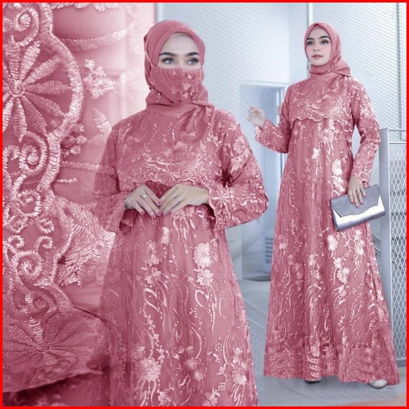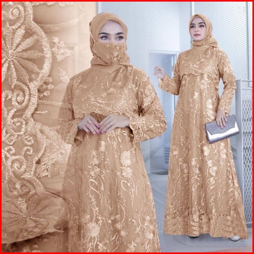Maxi Sonaya Gamis Full Brukat Tille Mutiara Gamis Undangan Gamis Kondangan