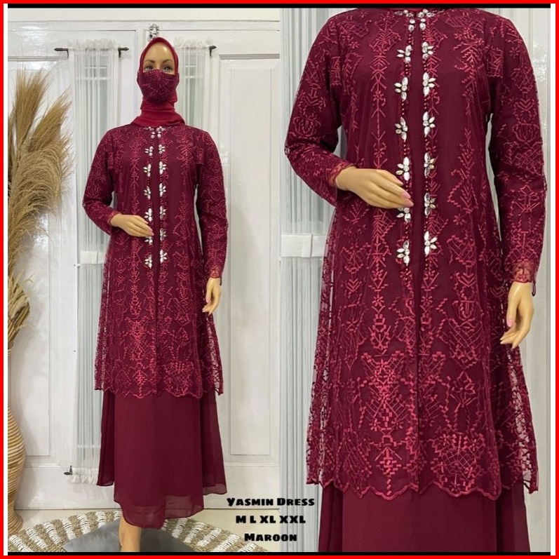 Gamis Yasmin Dress Payet Premium Gamis Ceruty Mix Payet Dress Pesta Mewah Gamis Mewah Gamis Dress Kondangan