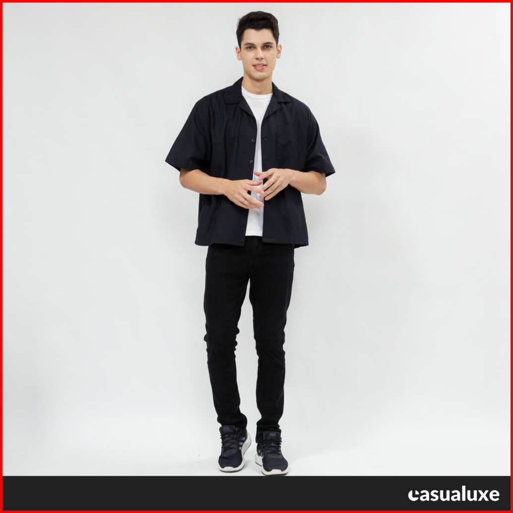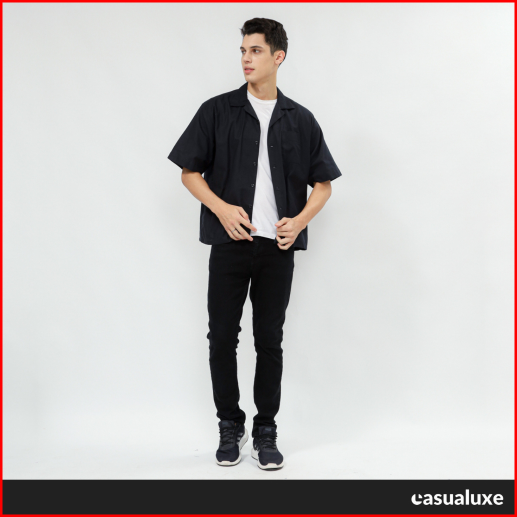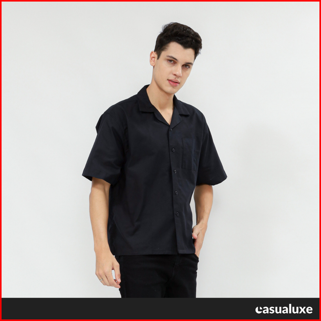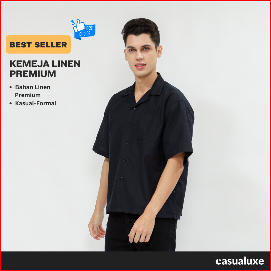 Casualuxe Cuban Bowling Boxy Oversized Linen Shirt Kemeja Linen Polos Kerah Terbuka Lengan Pendek