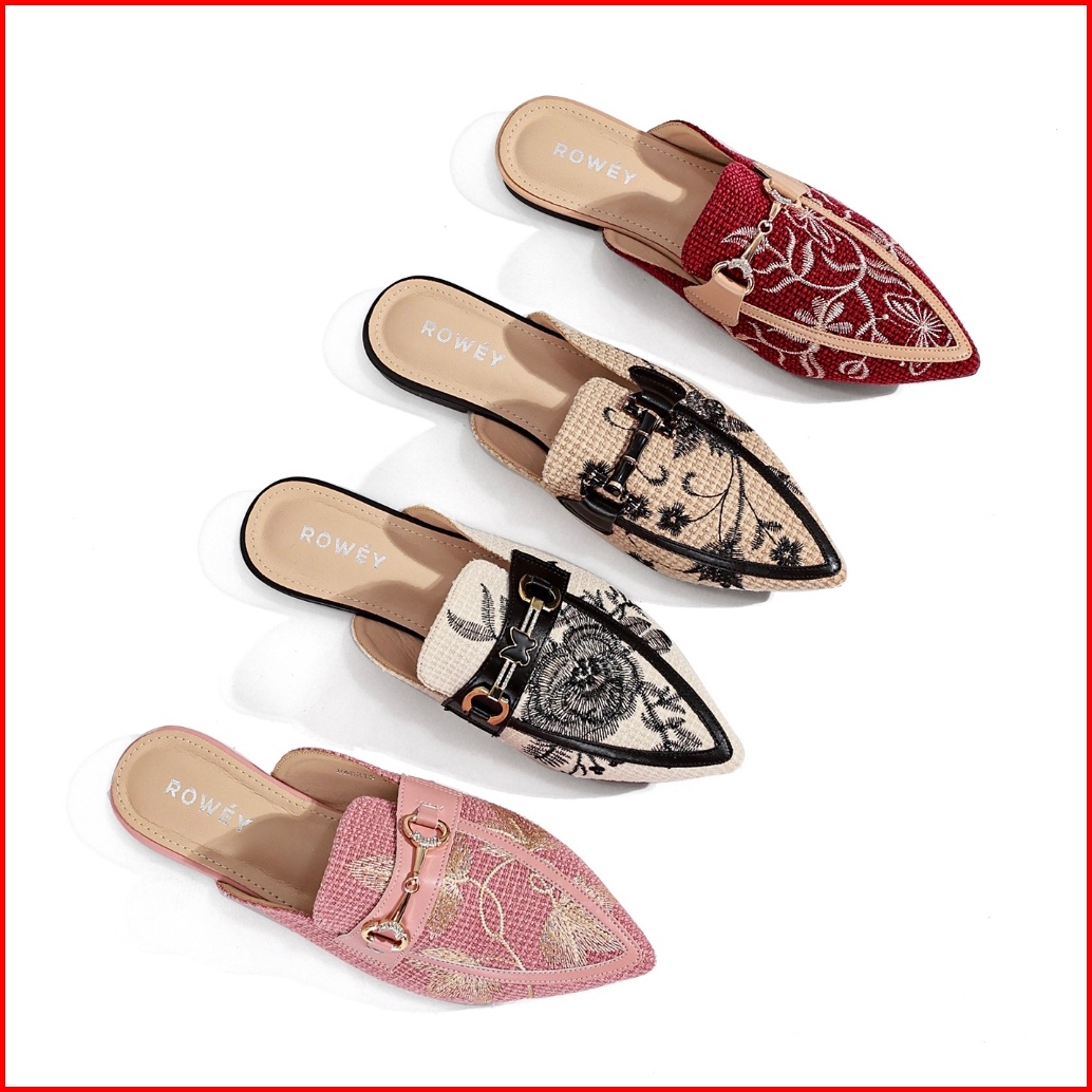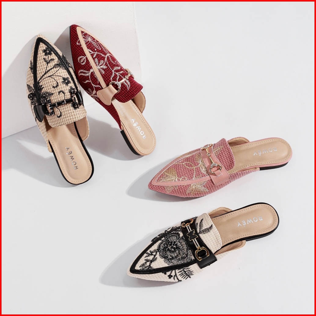 Rowey Sandal Mules Wanita Flat Shoes London Praha Moscow Madrid