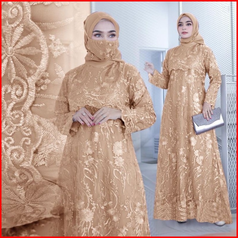 Maxi Sonaya S M L Xl Xxl Full Brukat Gamis Murah Gamis Terlaris Gamis Pesta
