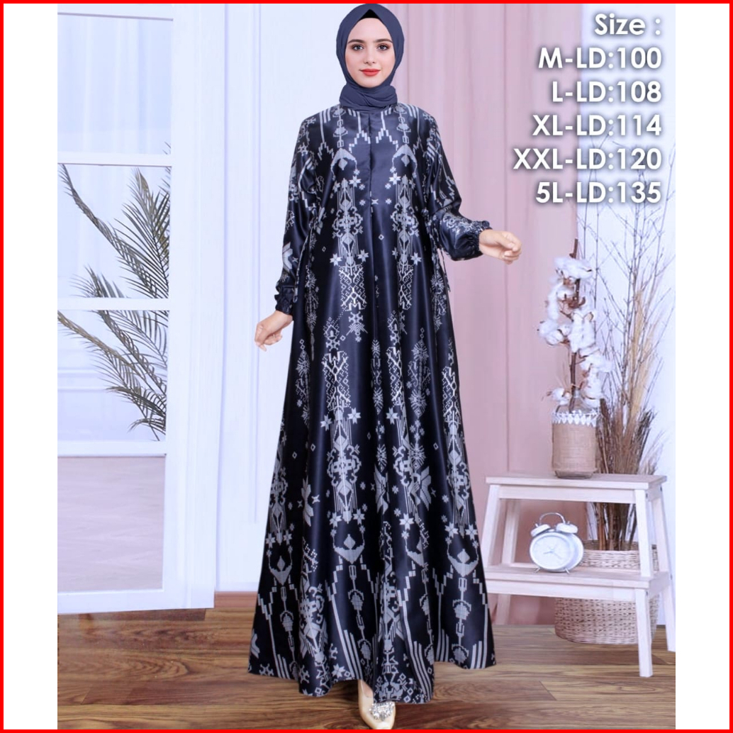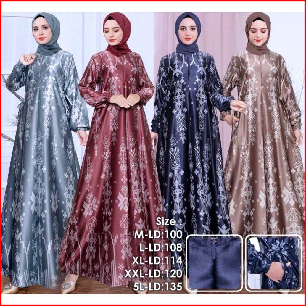 Gamis Makmara Silk Premium Motif Terbaru Bunsui Fashion Muslim Pesta Kondangan Wanita Kekinian Baju Dress Silky Wanita M