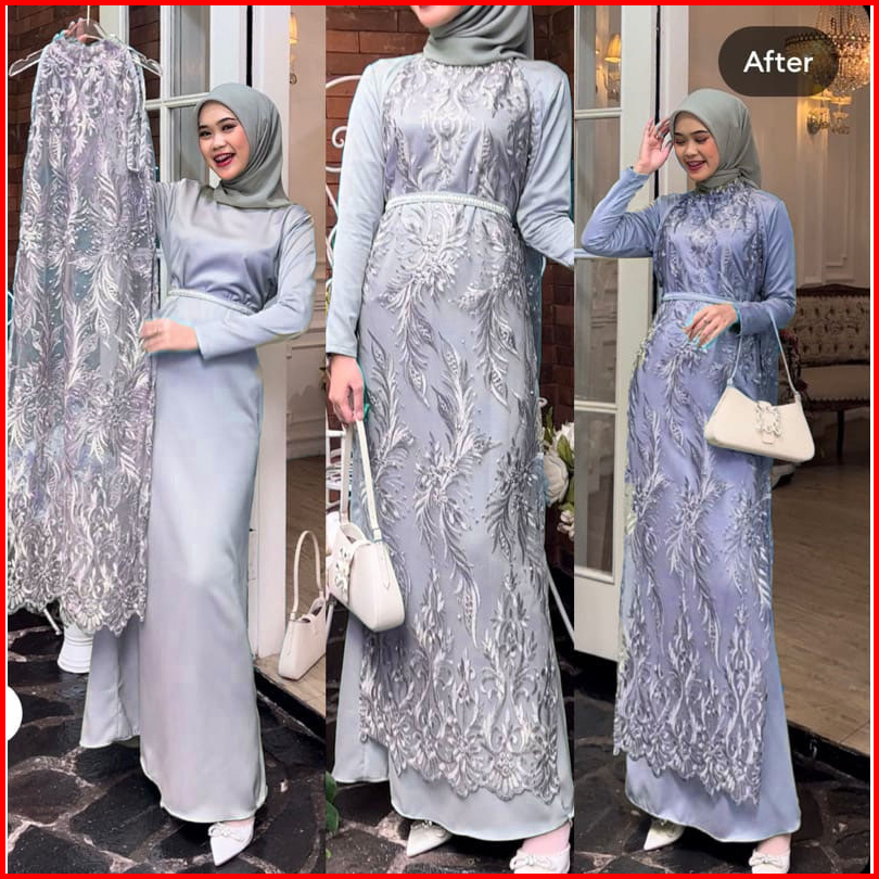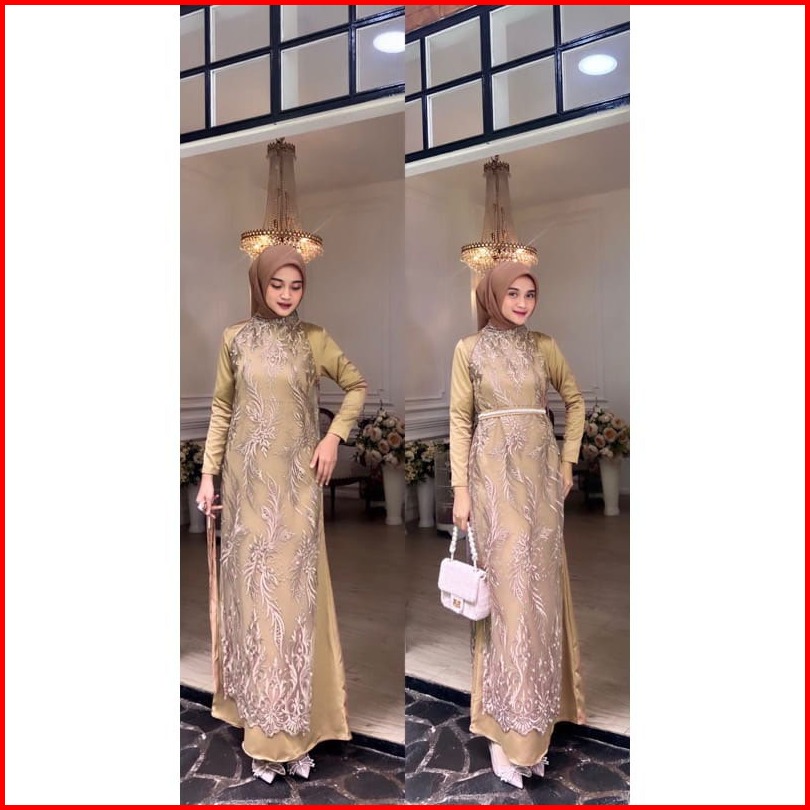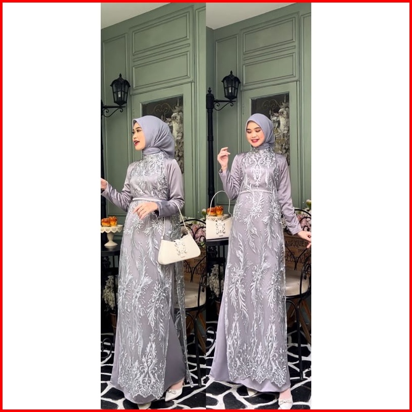 Promo - Savina Dress By Khaila Gamis Mewah Bridesmaid Termurah Aline Brokat Tule Tali Pinggang Organza Mutiara Satin Pes