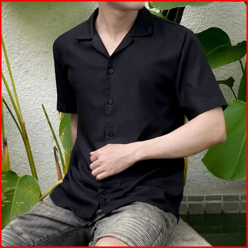 Smilesky Kemeja V Neck Pria Lengan Pendek Polos - Cotton Toyobo Adem Halus Ukuran M L Xl