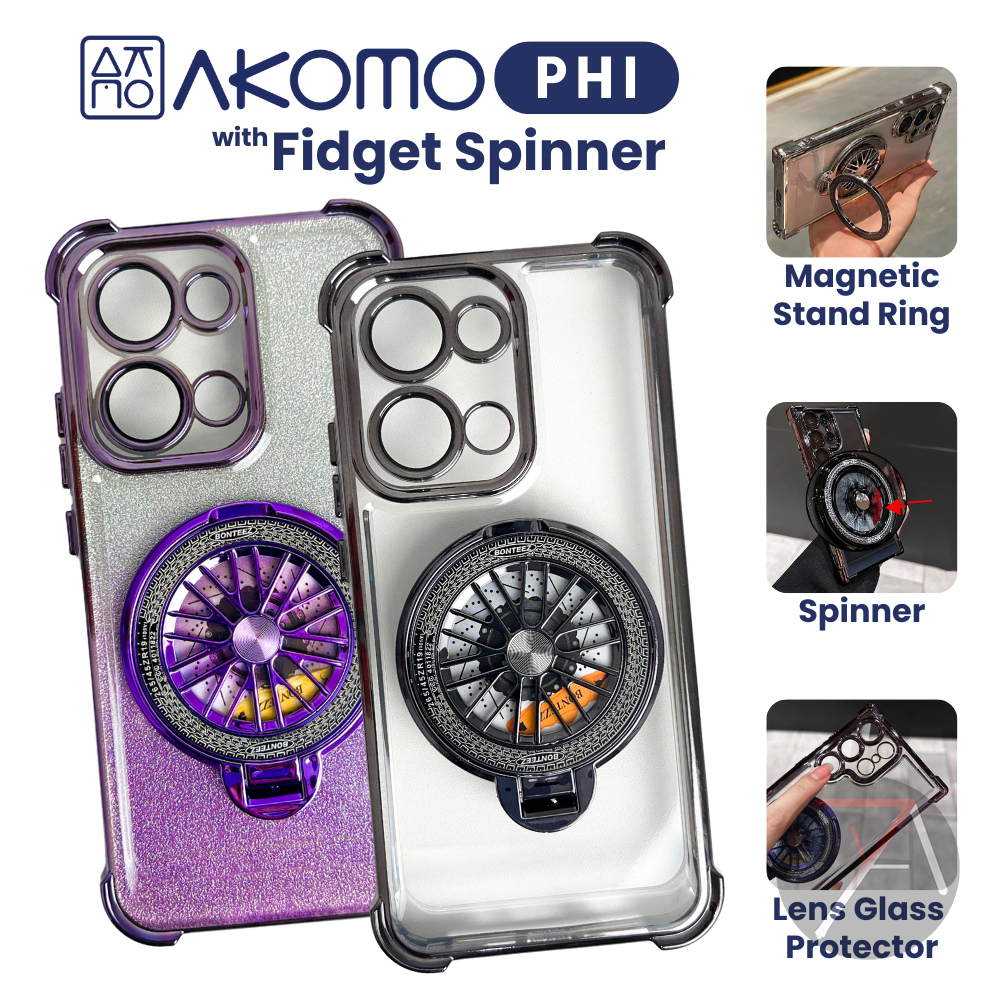 AKOMO PHI Soft Case untuk Opo Reno 13 Reno13 Reno12 12 Pro 12Pro Find X8Pro X8 5G Rotating Fidget Spinner Ring Kick Sta