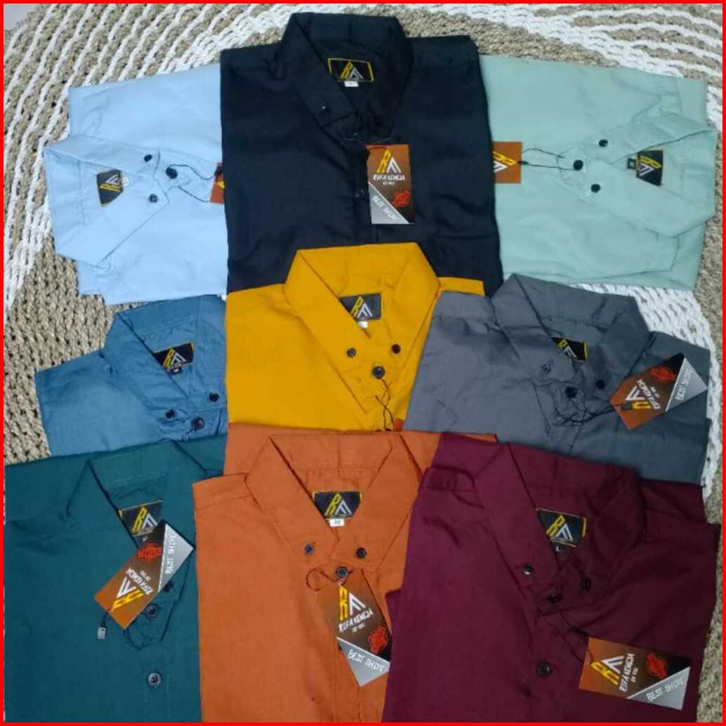 Kemeja Hem Pria Polos Lengan Pendek Basic Formal Terbaru Baju Kemeja Cowok Slimfit Kerja Bahan Katun