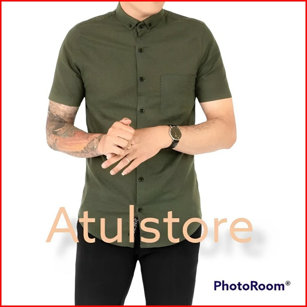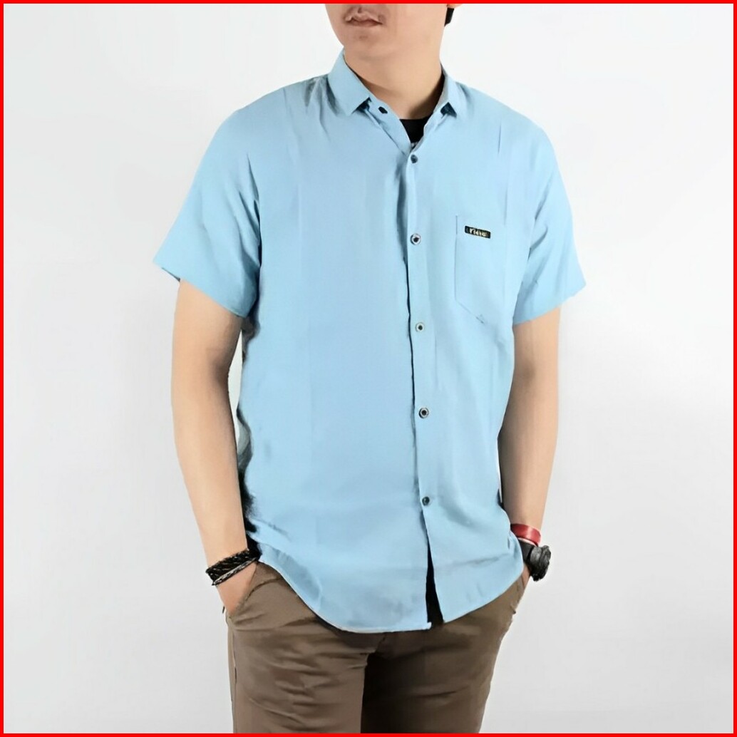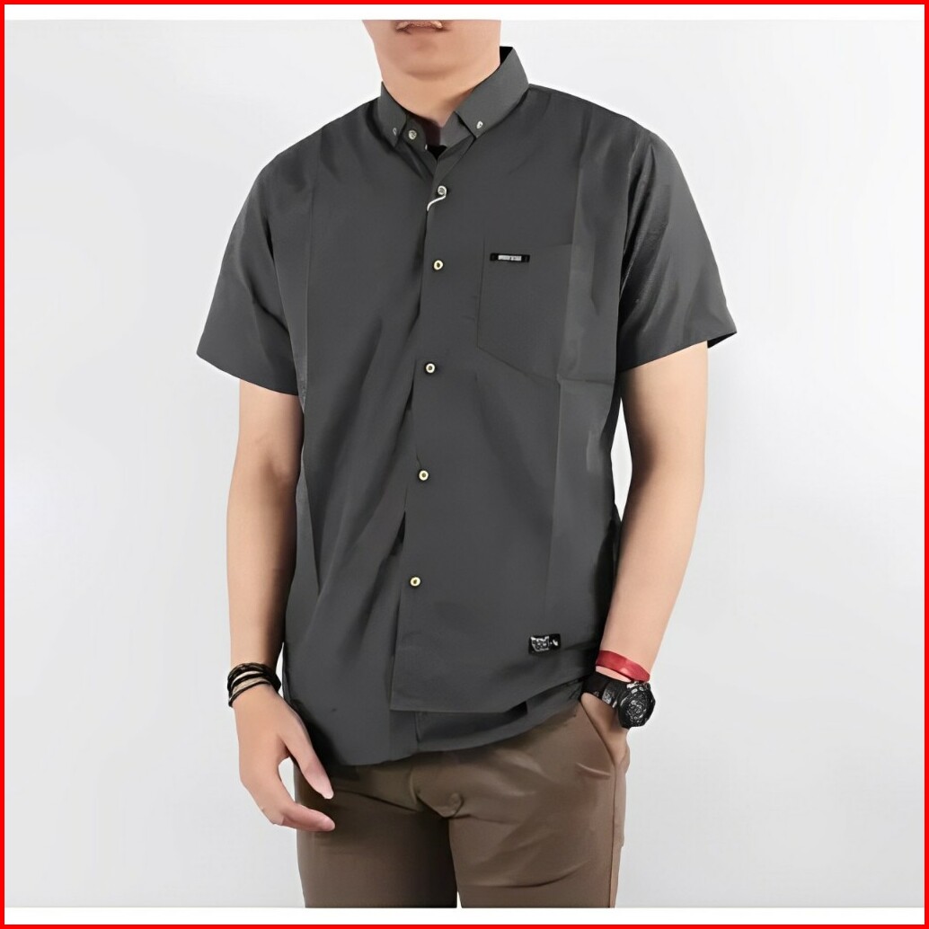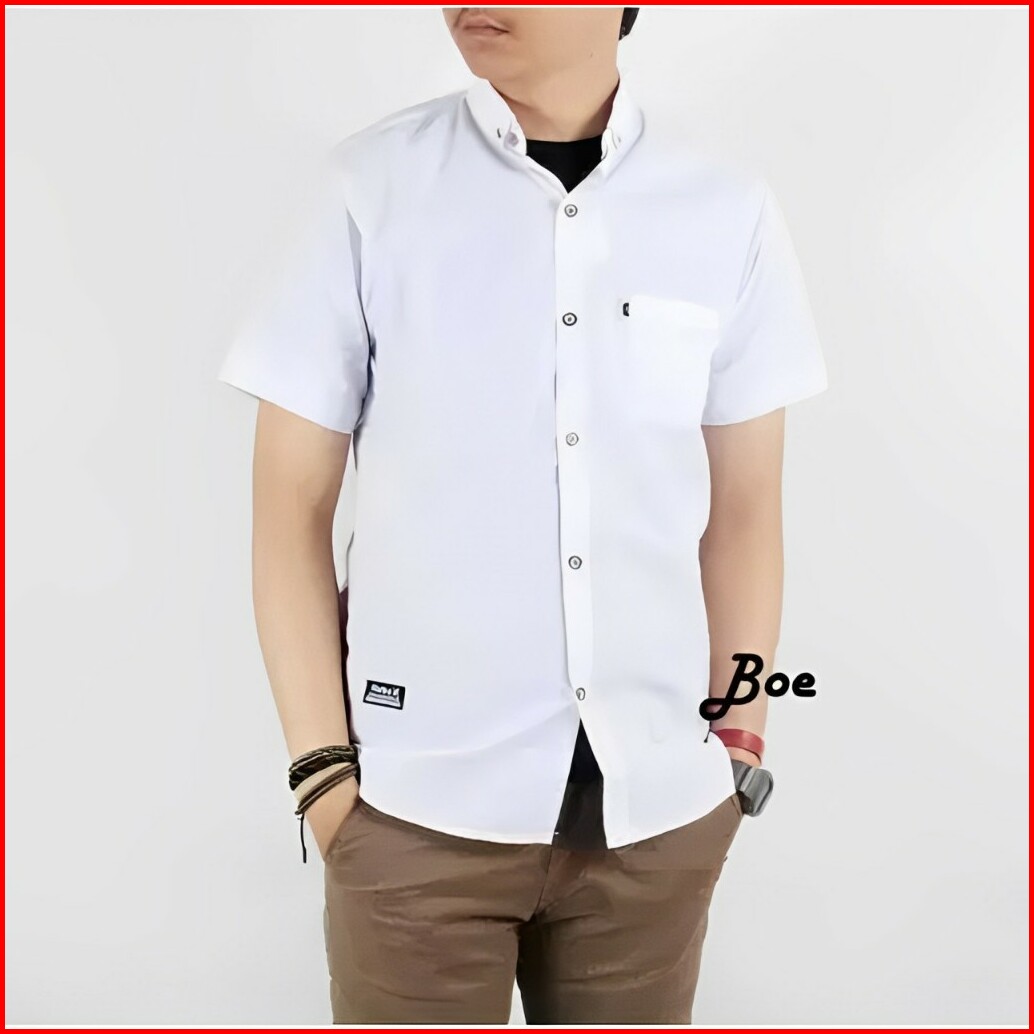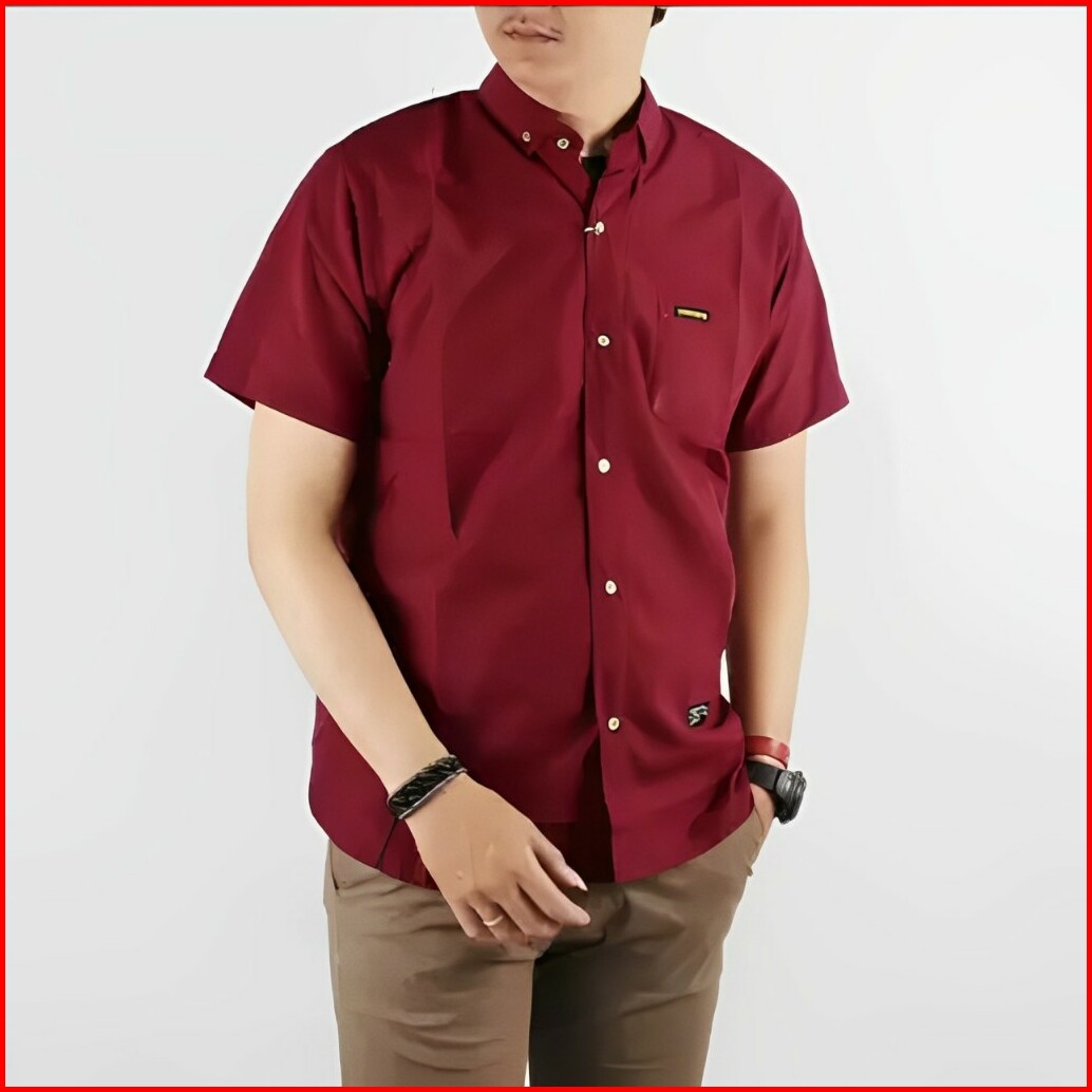 Kemeja Polos Lengan Pendek Pria Putih Merah Maron Hitam Navy Biru Dongker Kerah Shanghai Ciangi Slim