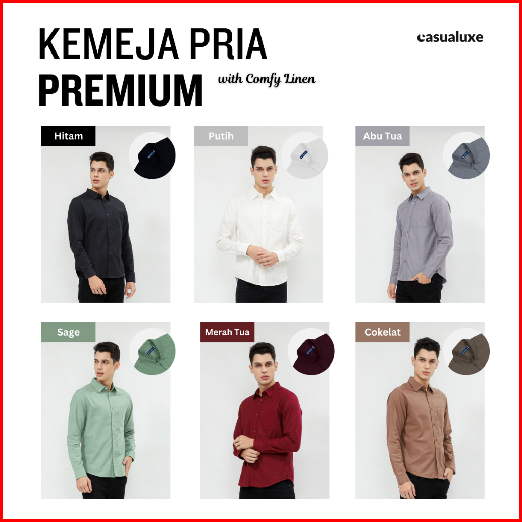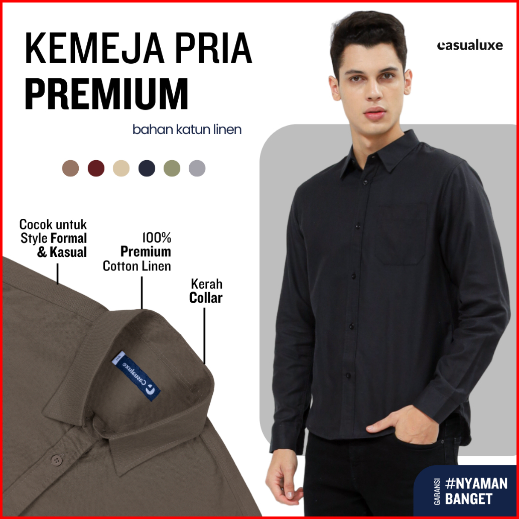 Casualuxe Kemeja Pria Lengan Panjang Linen Polos Long Sleeve Linen Shirt 8