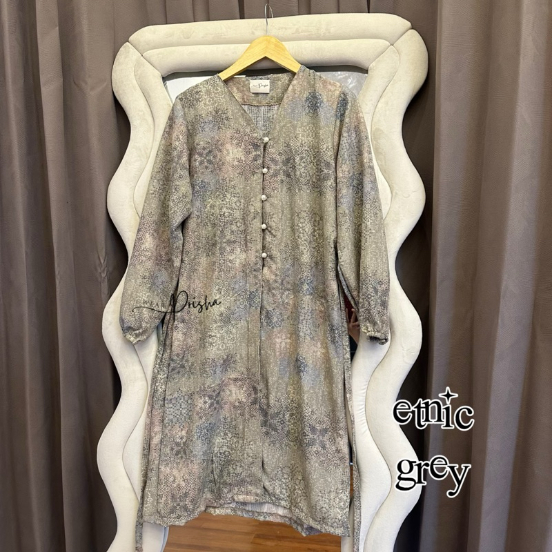 ZAFIA EMBROIDERY TUNIC | ATASAN TUNIK BORDIR RAYA COLLECTION MOTIF GARIS STRIPE KATUN LINEN MODEL KANCING DEPAN