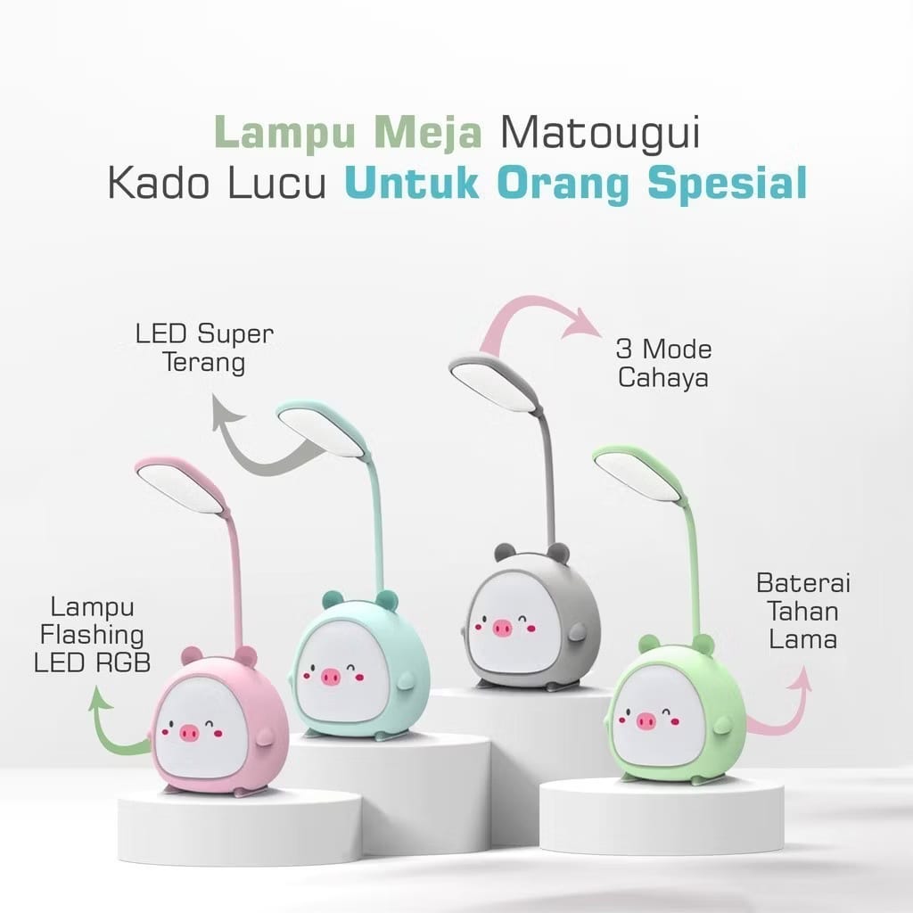 Lampu Meja Belajar LED Karakter Lucu Korea – Portable Table Lamp Poyo | Lampu Anak Tidur Baca Warna-warni Fleksibel